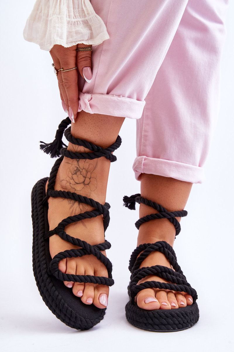 Sandałki Wiązane Masywna Platforma Czarne Can't Wait