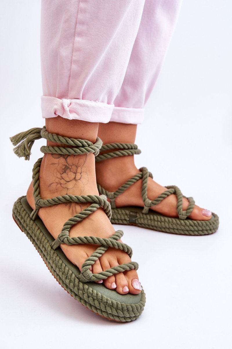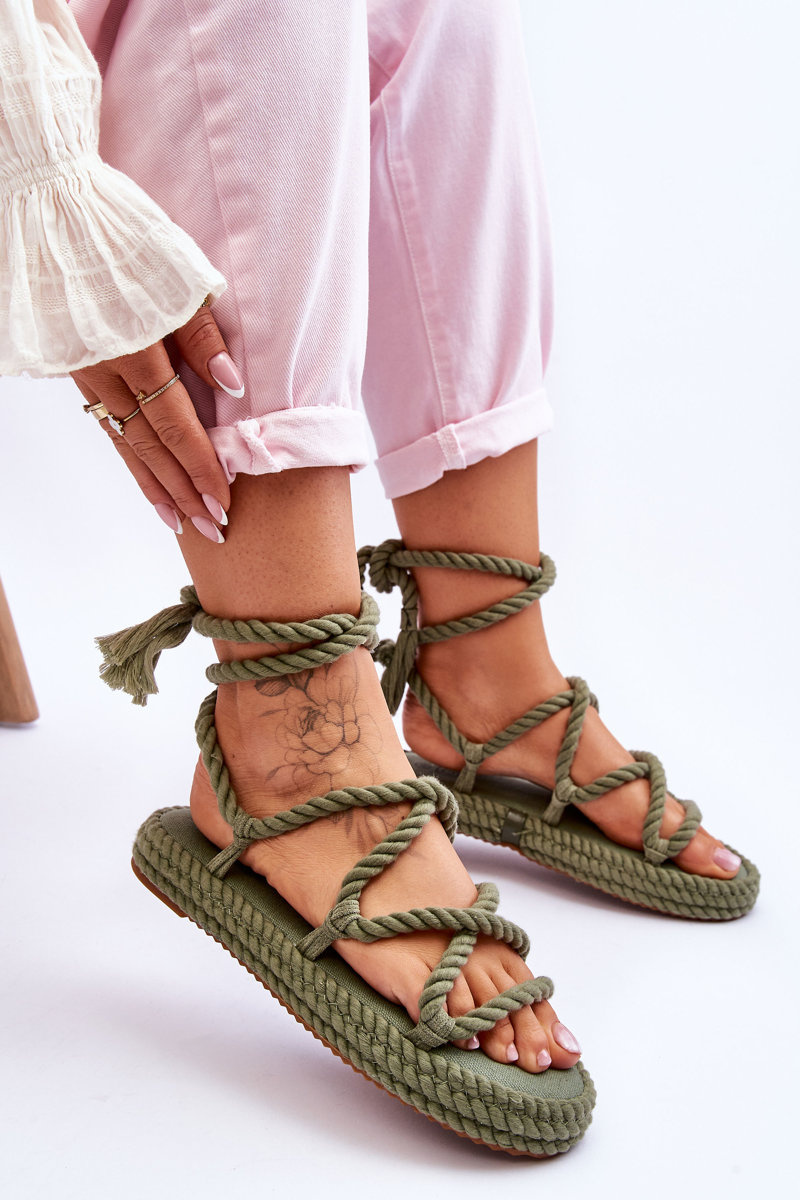 Sandałki Wiązane Masywna Platforma Zielone Can't Wait