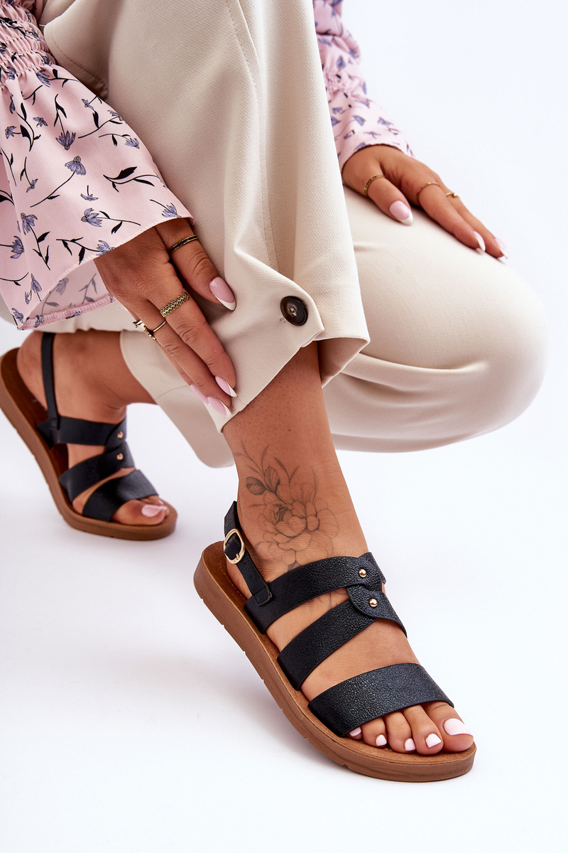 Sandały Damskie Błyszczące Czarne Catalia 7540