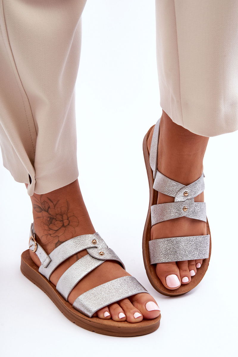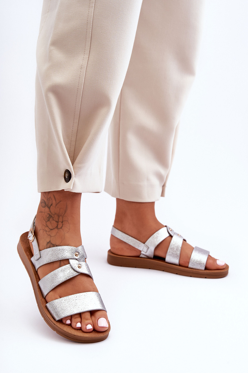 Sandały Damskie Błyszczące Srebrne Catalia 7540