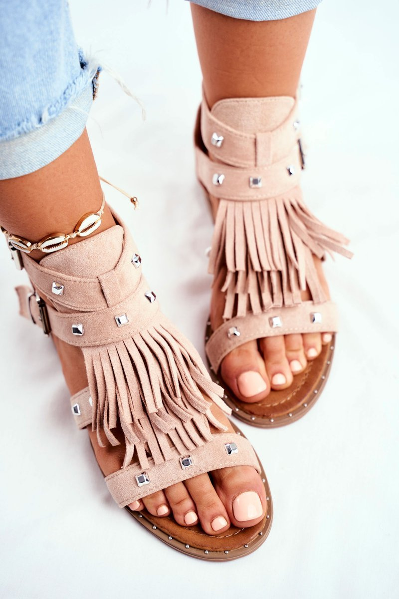 Tym razem coś dla Pań, które cenią sobie elegancki look nawet podczas upalnych letnich dni. Niesamowite sandałki w stylu boho, które podbijają serca kobiet. Wysoka cholewka, delikatne frędzle oraz srebrne dżety, sandałki które mają to coś! Suwak na zapiętku ułatwi zakładanie natomiast regulowane paski zadbają o lepsze dopasowanie do nogi. Przy wyborze rozmiaru prosimy sugerować się tabelą rozmiarów.