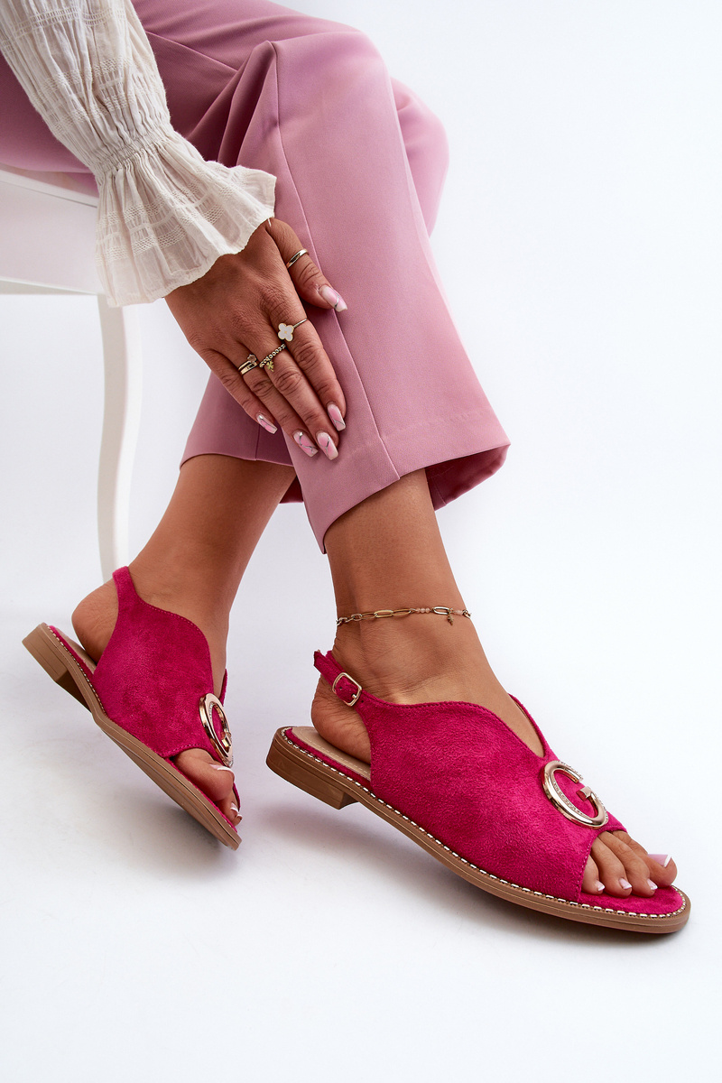 Sandały Damskie Eleganckie Z Ozdobą Eko Zamszowe Fuksja S.Barski KV27-058