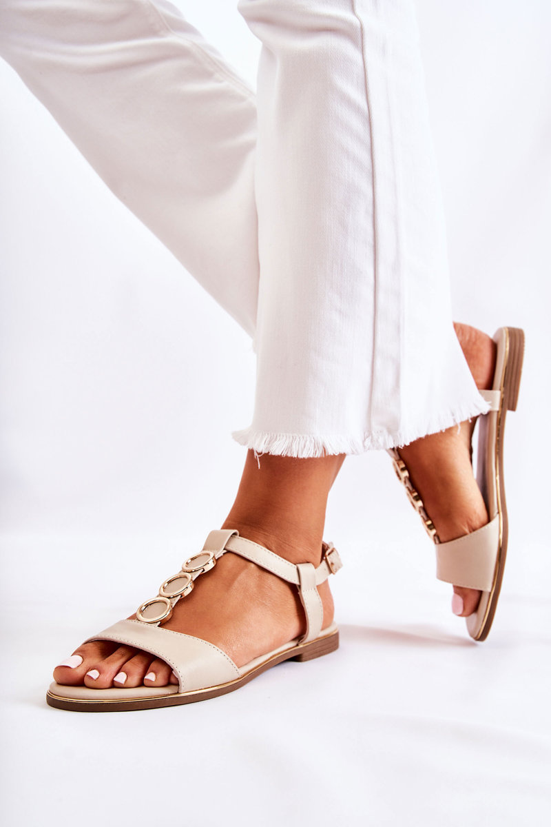 Sandały Damskie Klasyczne Ozdobny Pasek Beżowe Terina