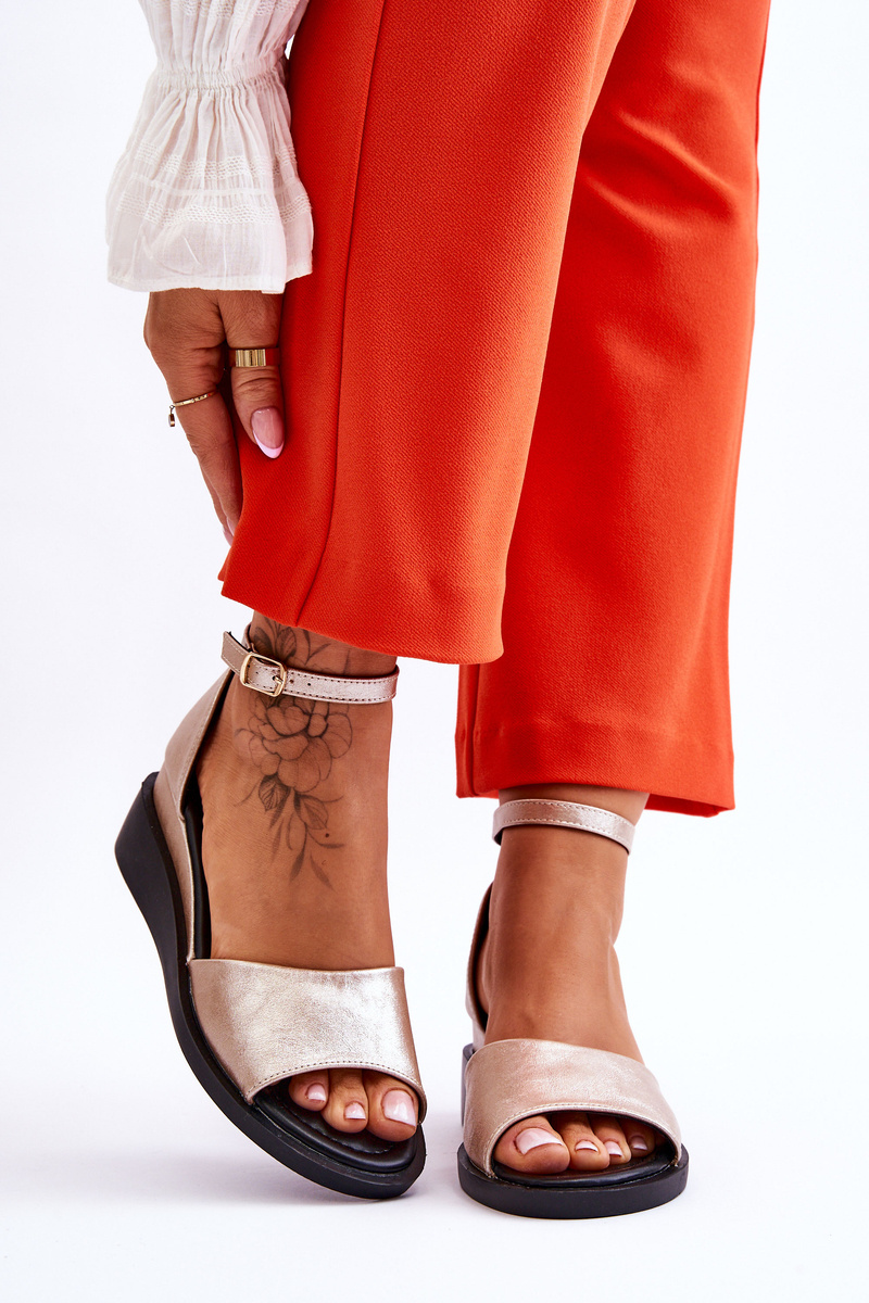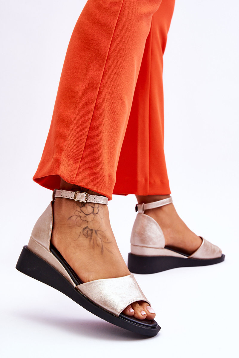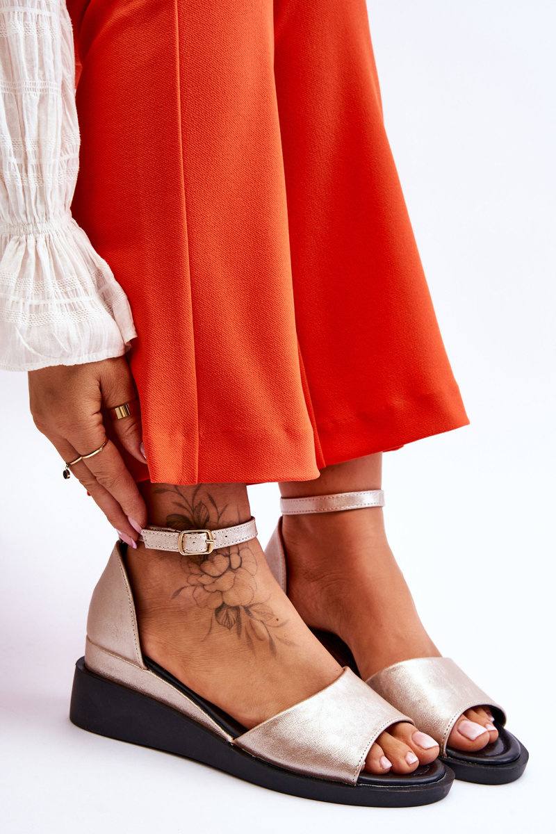 Sandały Damskie Klasyczne Skóra Koturn Złote Truett