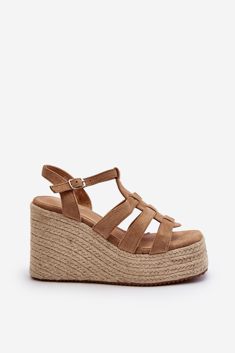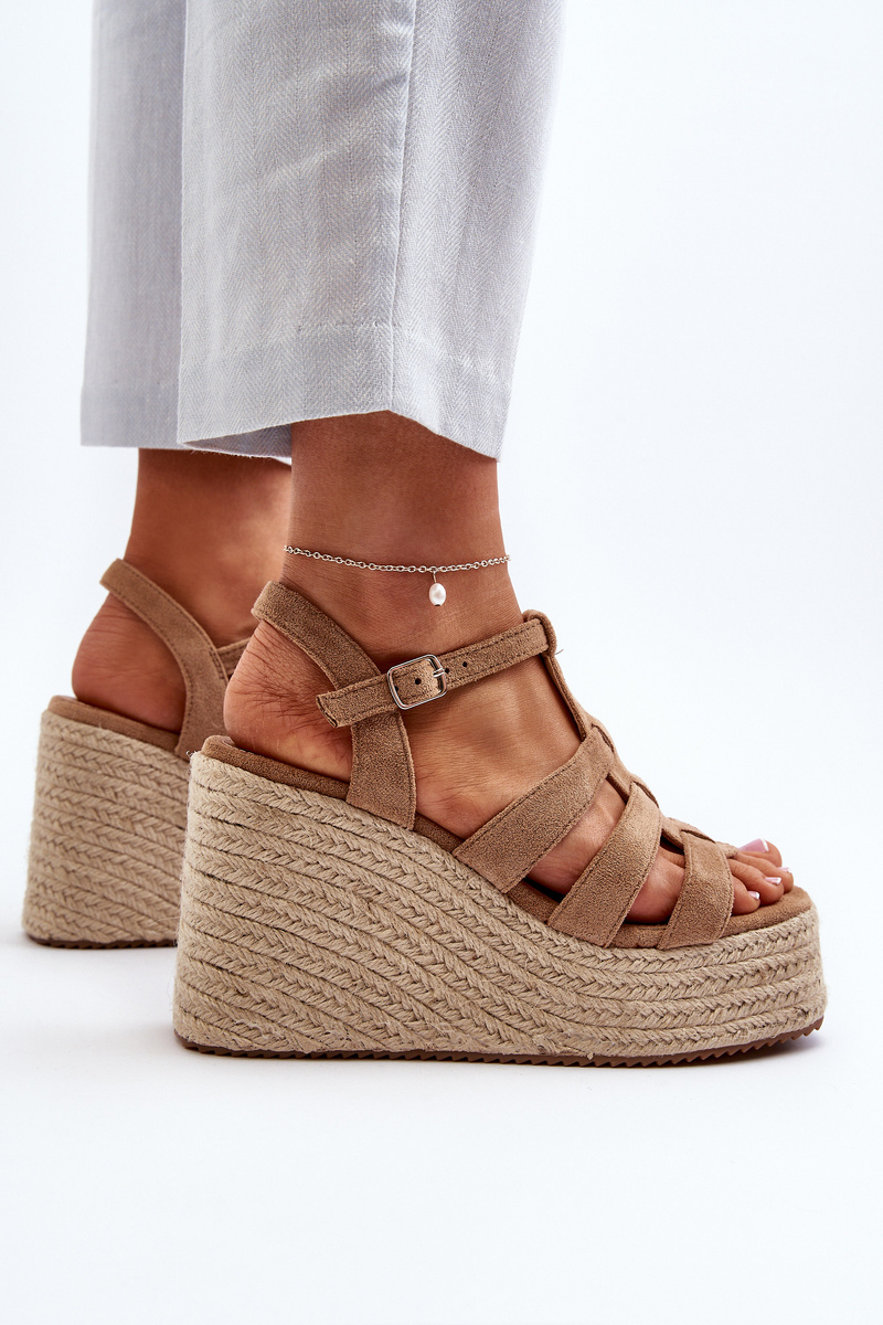 Sandały Damskie Koturn Plecionka Brązowe Gnosis H8-689