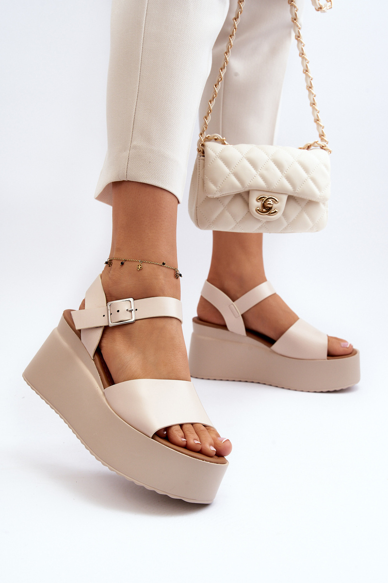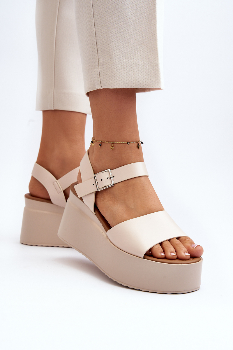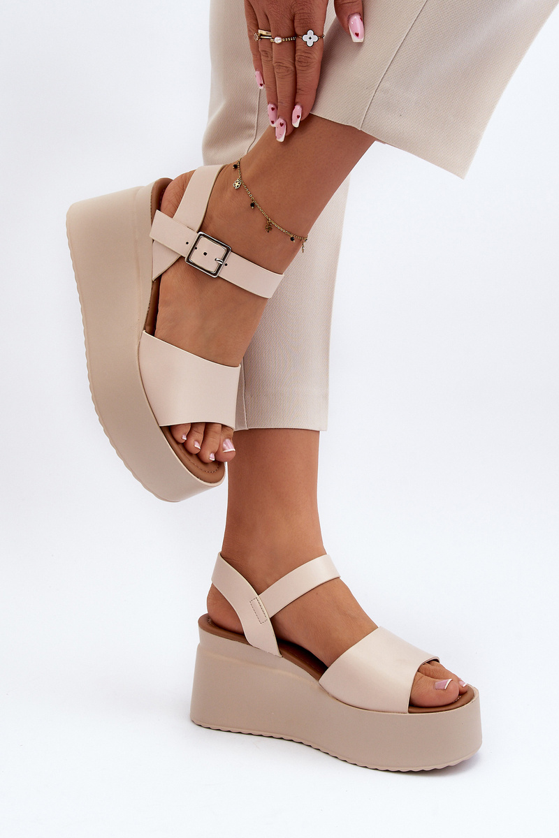 Opinie o Sandały Damskie Na Koturnie Beżowe PS18