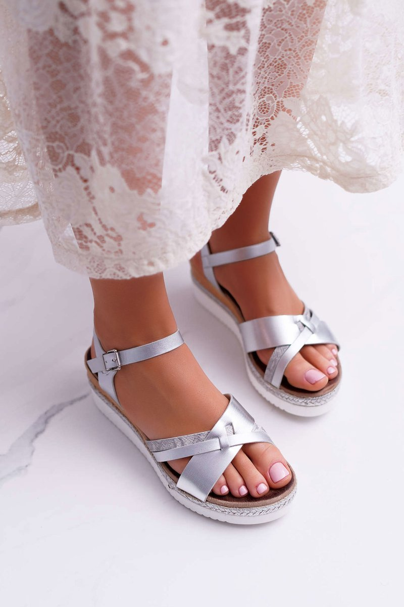 Sandały Damskie Na Koturnie Eleganckie Srebrne Meryl