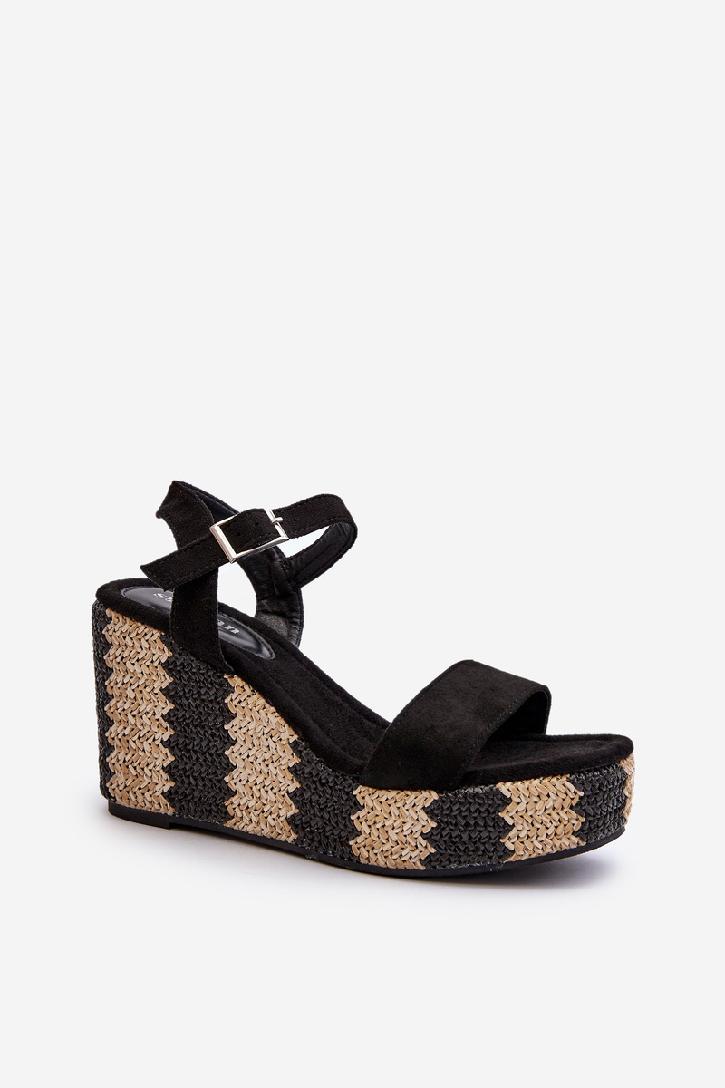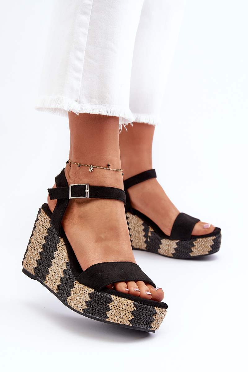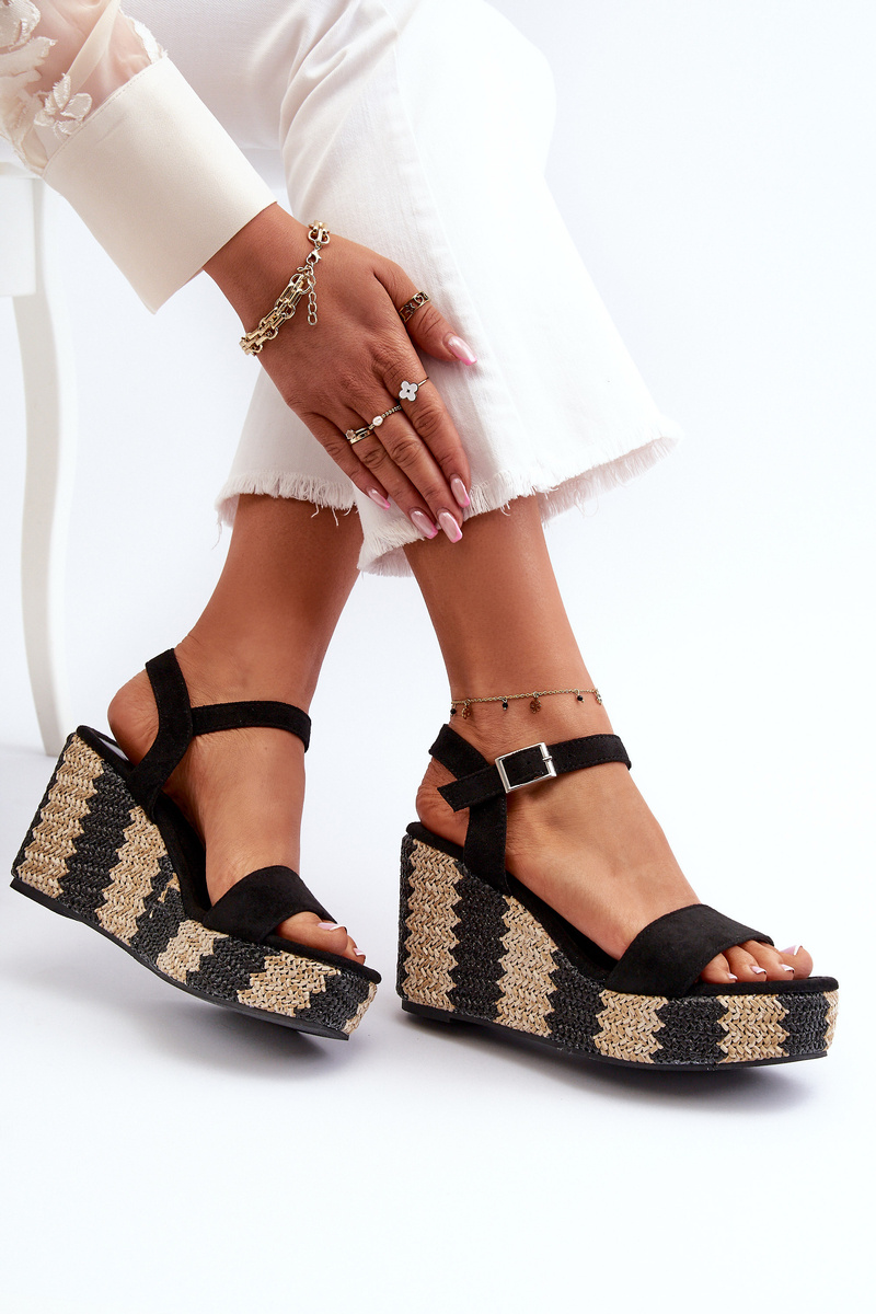 Sandały Damskie Na Koturnie Z Plecionką Czarne Reviala JA-48