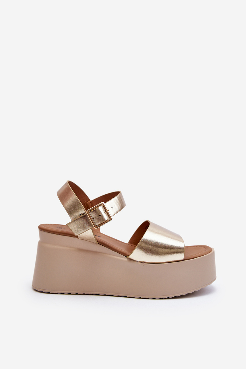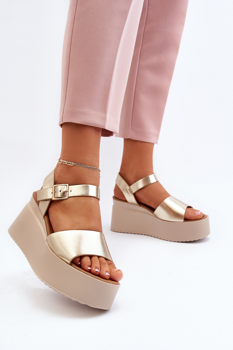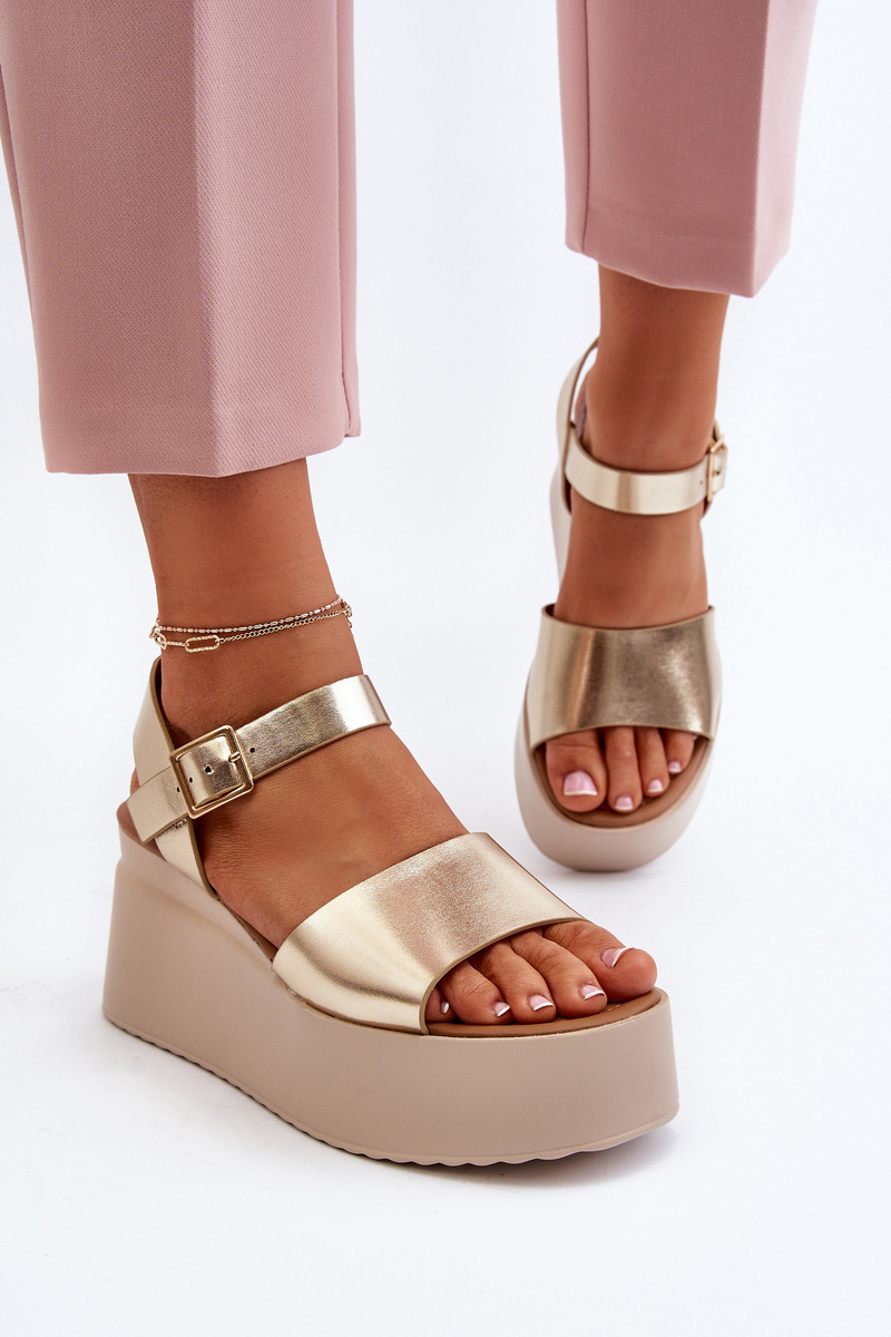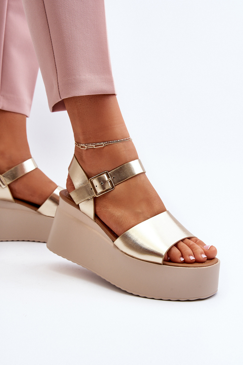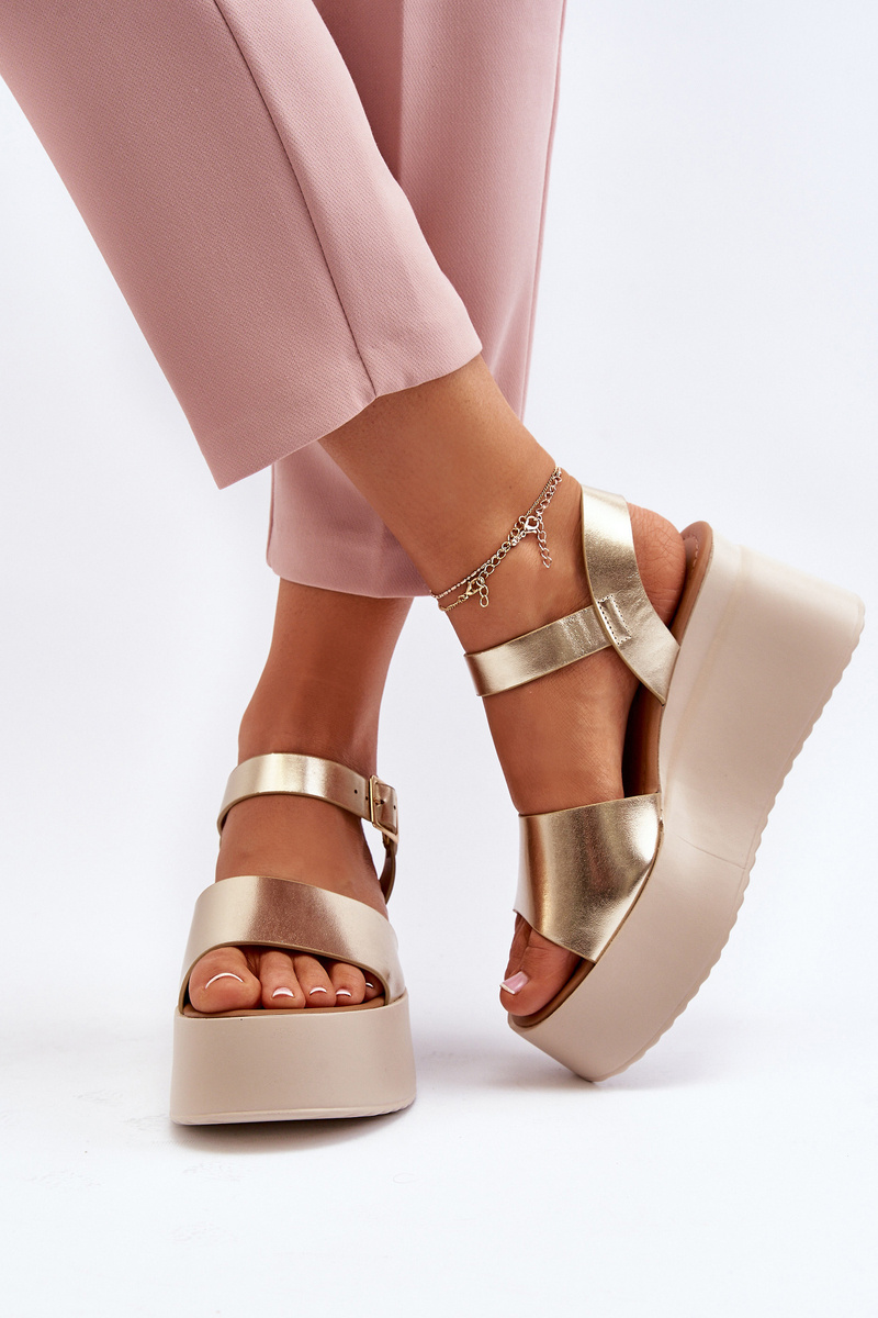 Sandały Damskie Na Koturnie Złote PS18