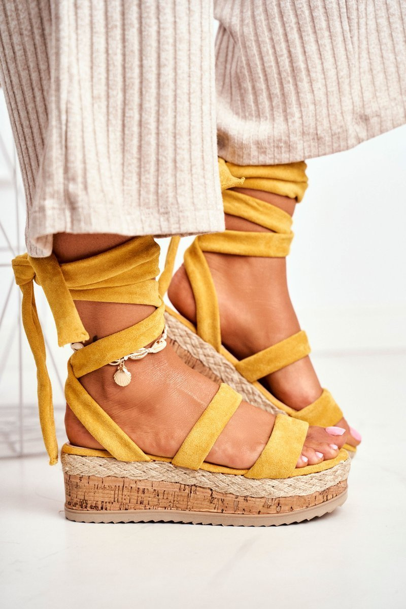 Sandały Damskie Na Platformie Wiązane Żółte La Favorite
