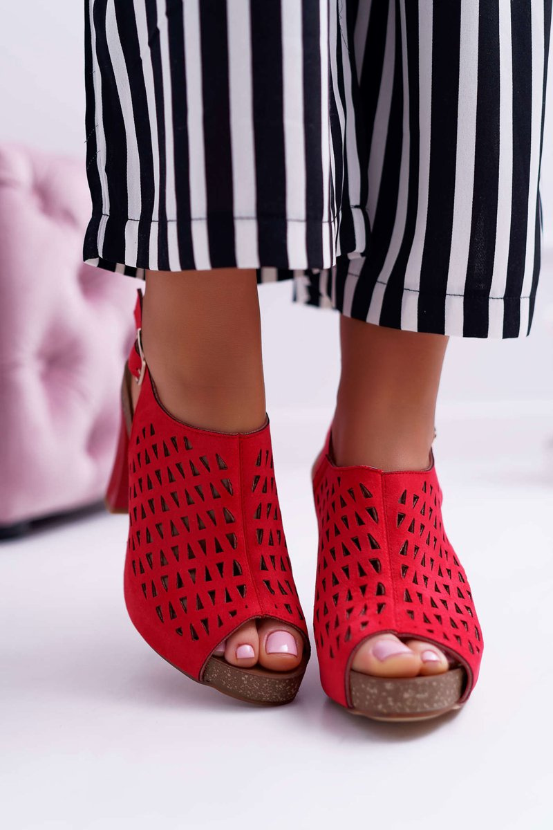 Sandały Damskie Na Słupku Sergio Leone SK850 Czerwone Farmona