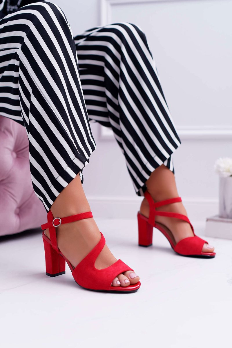 Sandały Damskie Na Słupku Sergio Leone SK868 Zamszowe Czerwone Mersi