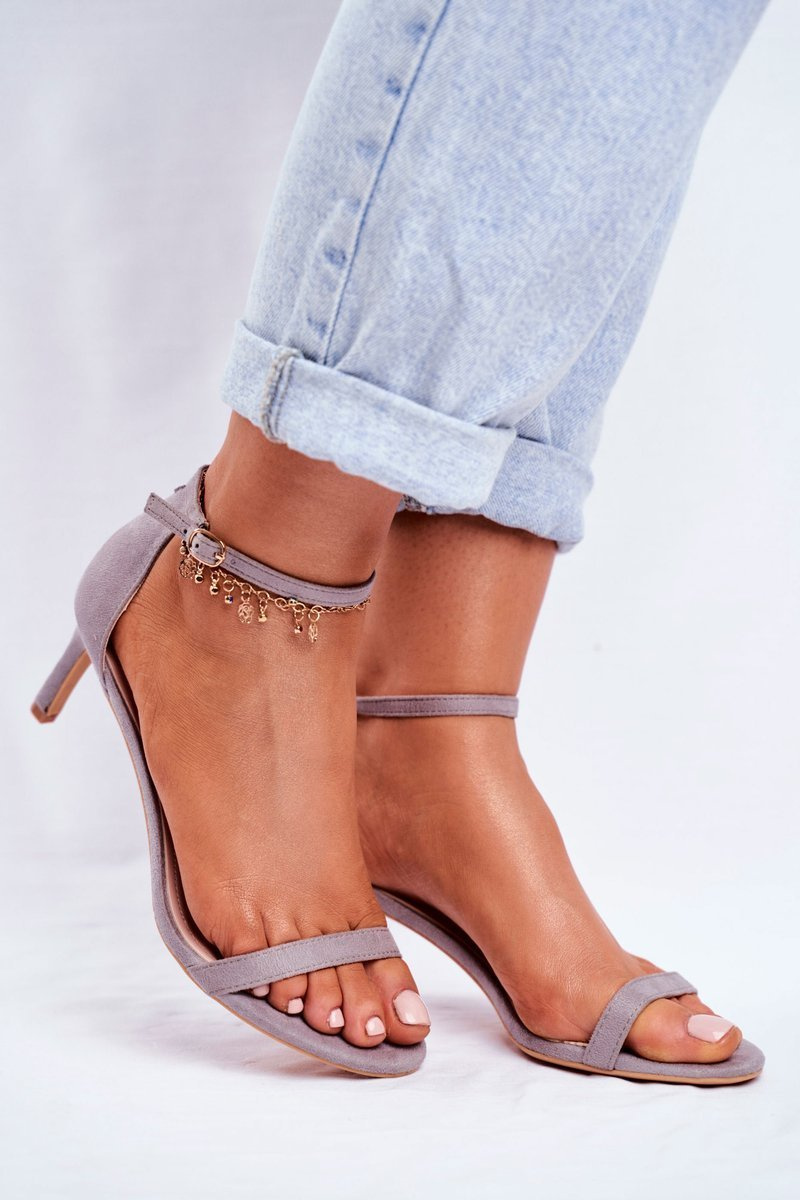Sandały Damskie Na Szpilce Klasyczne Szare Mintore