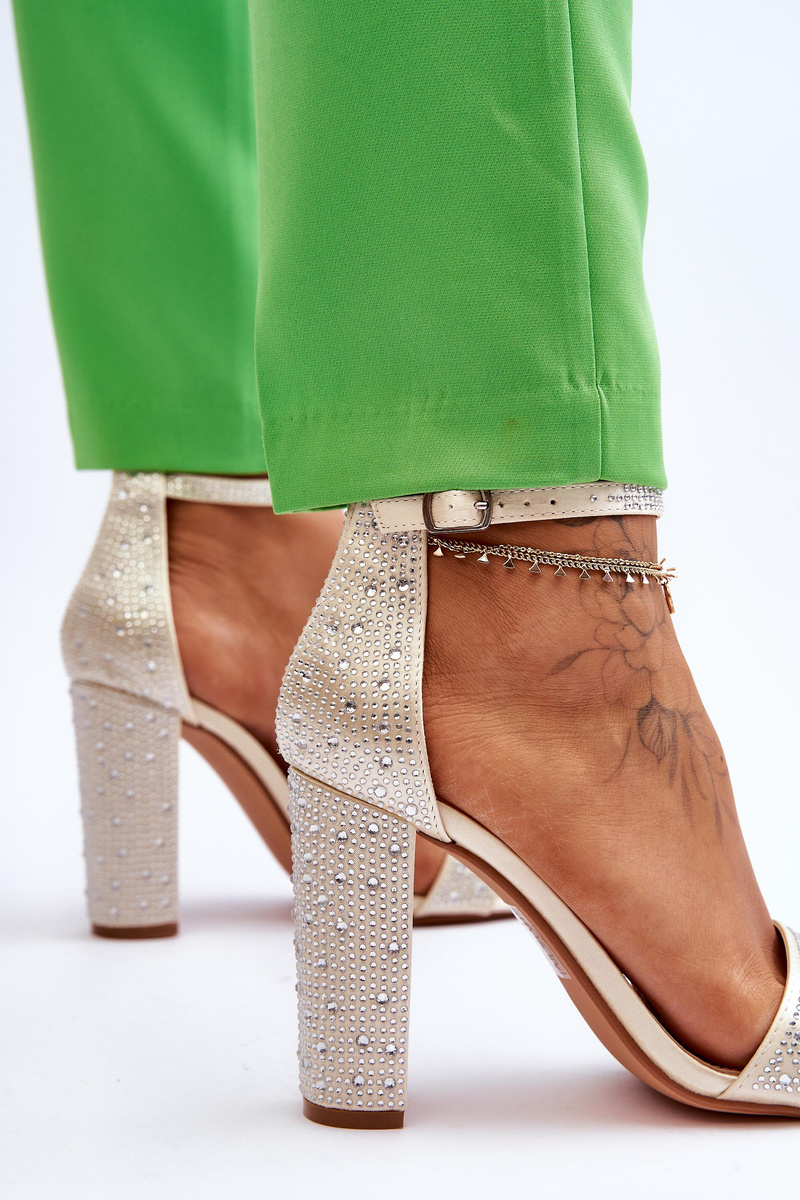 Sandały Damskie Obcas Cyrkonie Beżowe Idealistic
