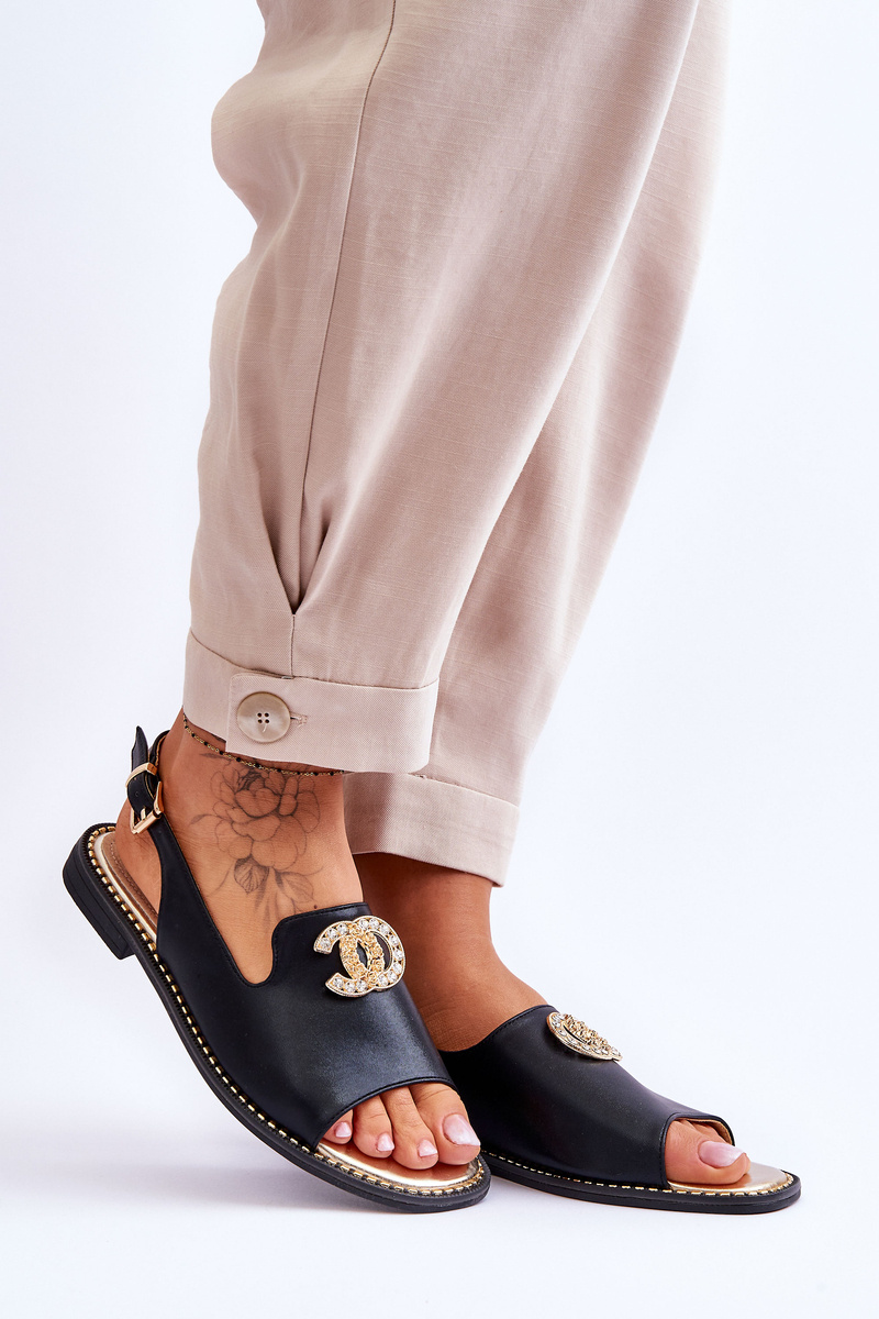Sandały Damskie Ozdoba Czarne S.Barski KV-2775-49
