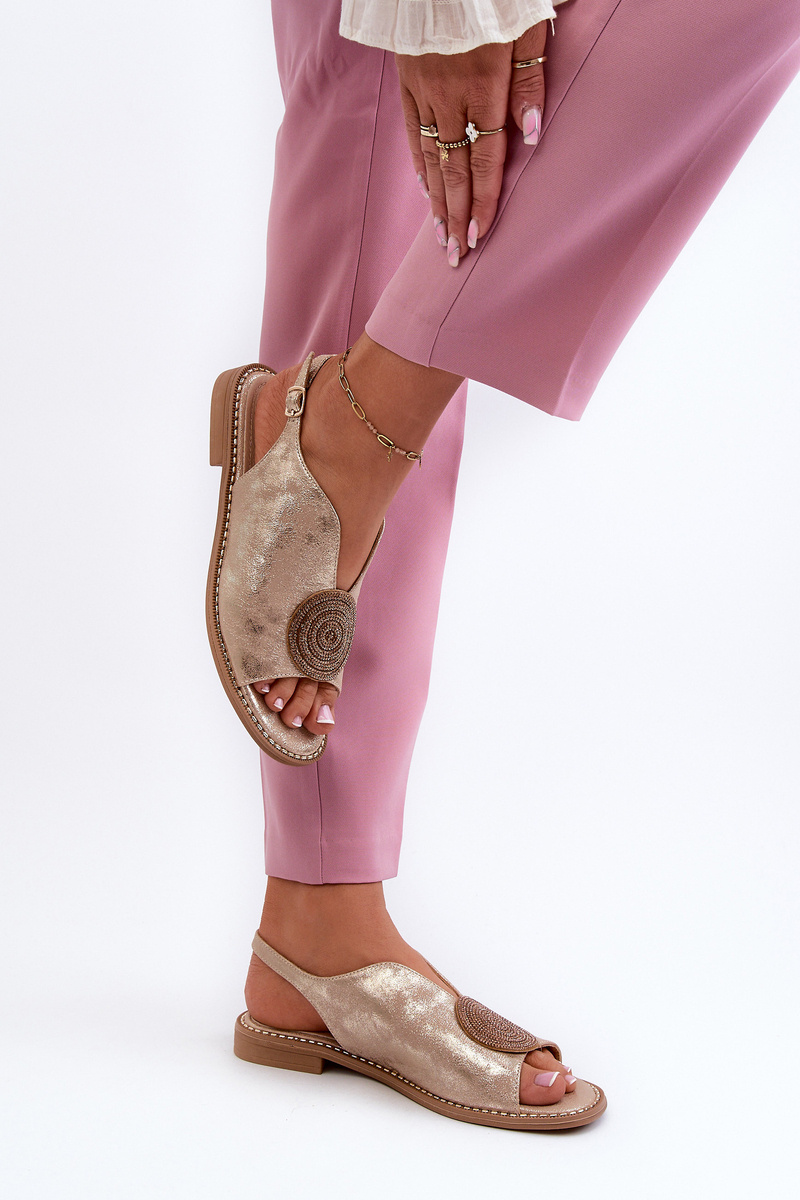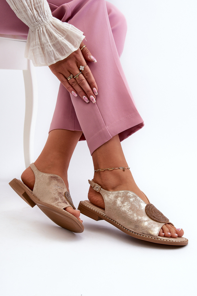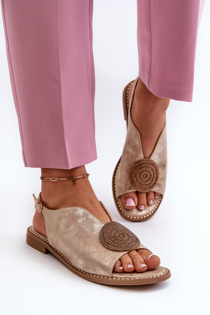 Sandały Damskie Ozdoba Płaski Obcas Złote S.Barski KV24-057