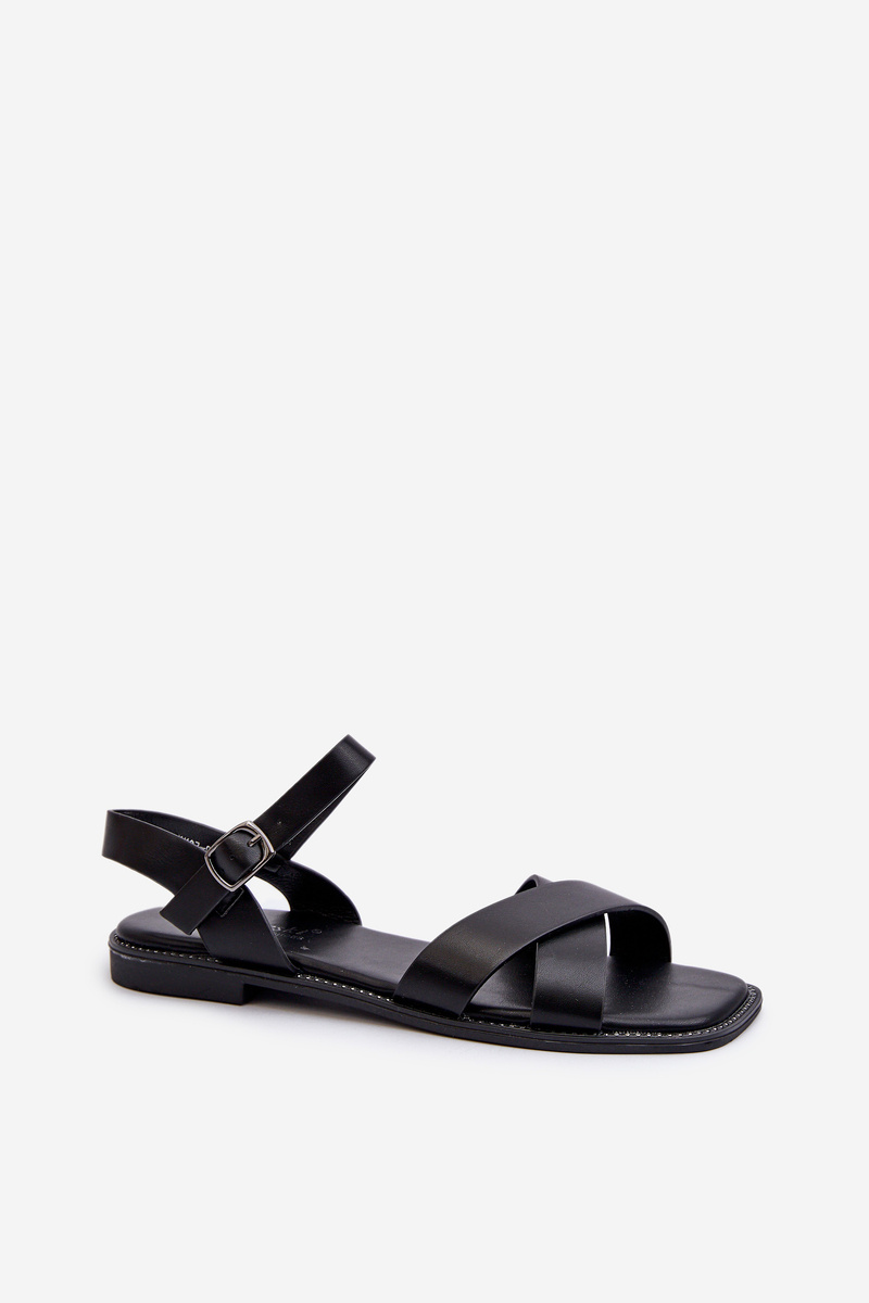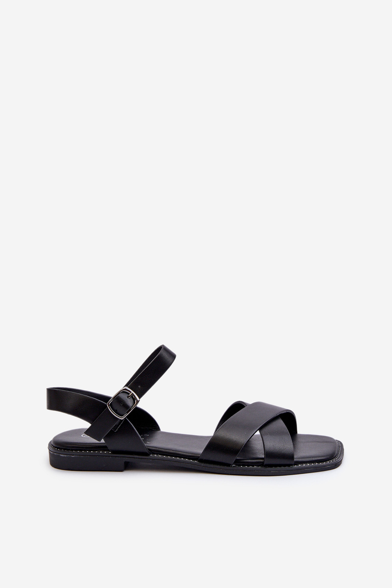 Sandały Damskie Płaskie Eko Skóra Czarne S.Barski KV27-003