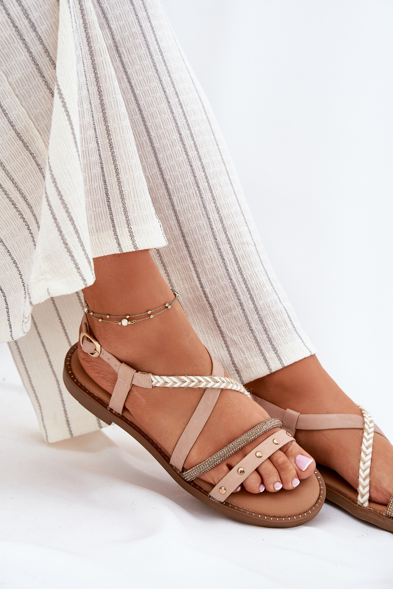 Sandały Damskie Płaskie Ozdobne Paseczki Beżowy Vinceza 17379