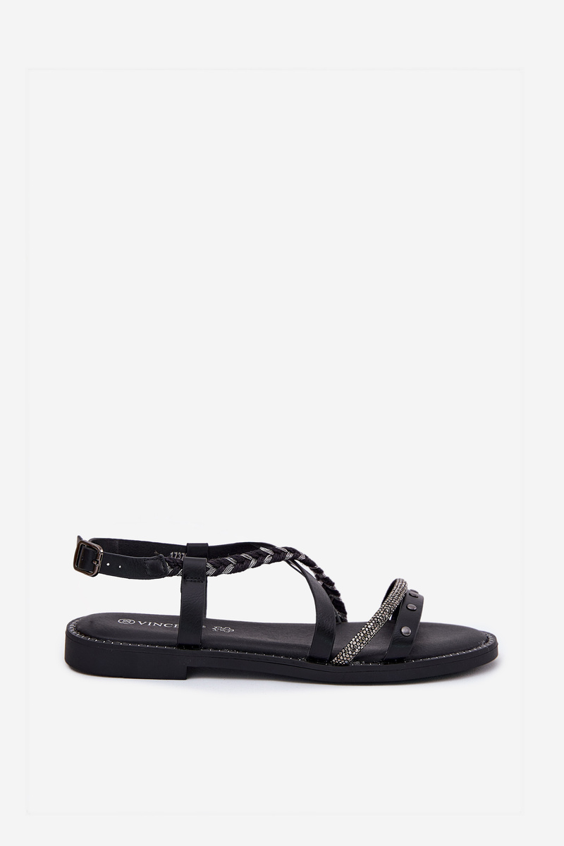Sandały Damskie Płaskie Ozdobne Paseczki Czarne Vinceza 17379