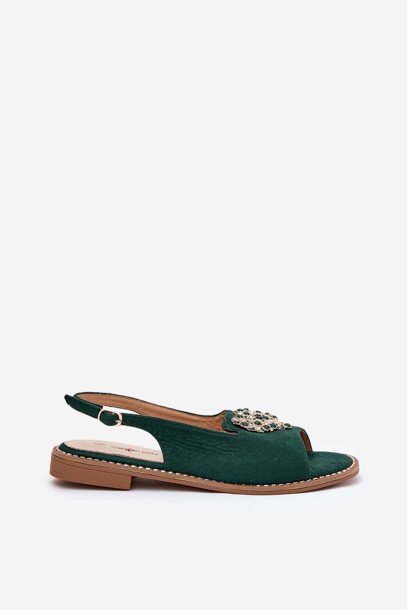 Sandały Damskie Płaskie Ozdobne Serce Zielone S.Barski KV27-018