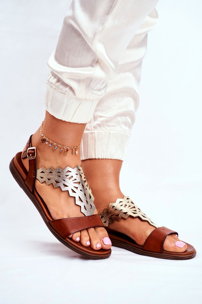Sandały Damskie Płaskie Sergio Leone Brązowe SK035