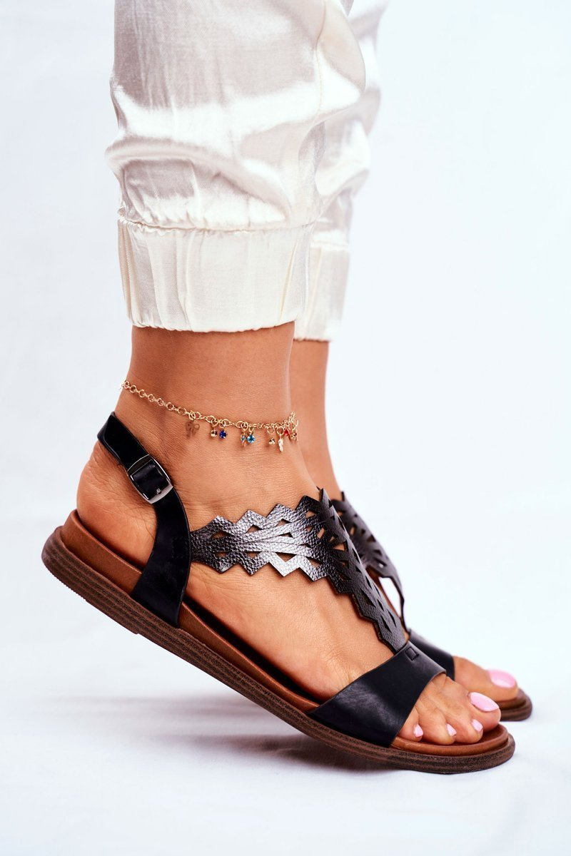 Sandały Damskie Płaskie Sergio Leone Czarne SK035