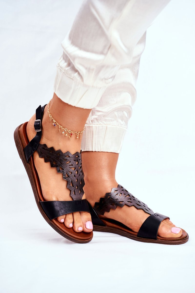 Opinie o Sandały Damskie Płaskie Sergio Leone Czarne SK035