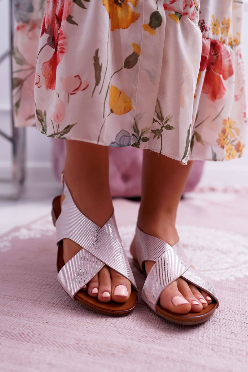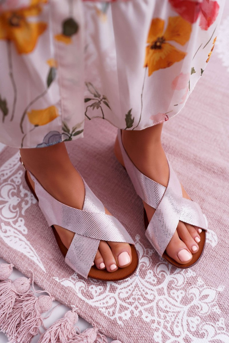 Sandały Damskie Płaskie Skórzane Laura Messi Różowe 1960