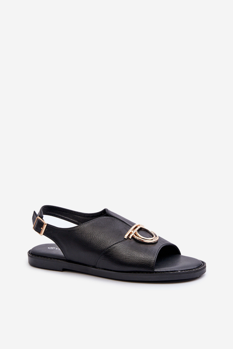 Sandały Damskie Płaskie Złota Ozdoba Czarne Vinceza 17319