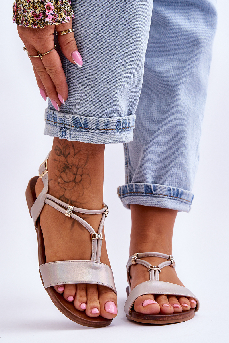 Wygoda i kobiecość w jednym? Sandały na płaskim obcasie mogą Ci to zagwarantować! Przewiewne, delikatne i jednocześnie zapewniające wysoki komfort w użytkowaniu. Ten model jest stworzony właśnie dla Ciebie! Wykonane z eko skóry z dbałością o szczegóły. Model ten jest zapinany na regulowany pasek ze sprzączką. Dodatkowo sandałki posiadają ozdobne dżety. Idealny model na upalne dni!