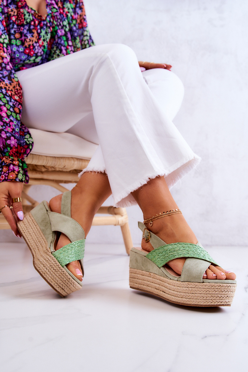 Sandały Damskie Pleciona Platforma Zielone Emmalee