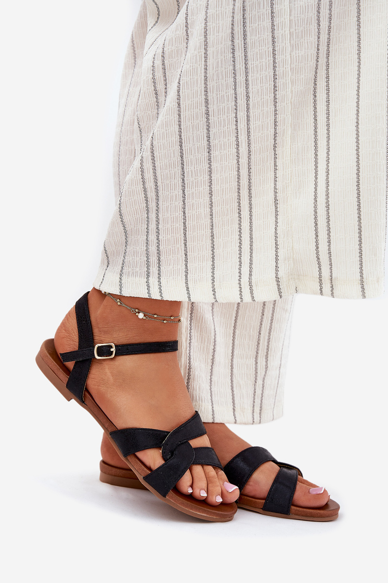 Sandały Damskie Połyskujące Płaskie Czarne S.Barski KV51-022