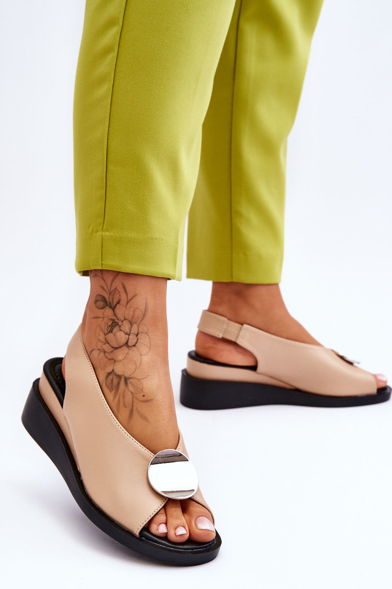Sandały Damskie Skóra Koturn Beżowe Justice