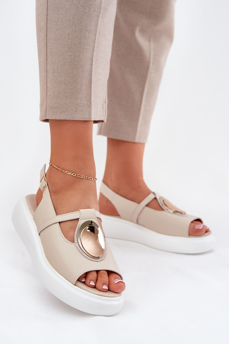 Sandały Damskie Skóra Naturalna Eleganckie Beżowe S.Barski GR51-603