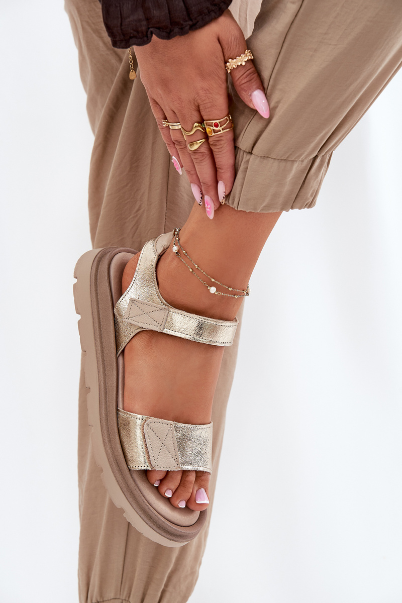Sandały Damskie Skóra Naturalna Platforma Złote Zazoo 40443