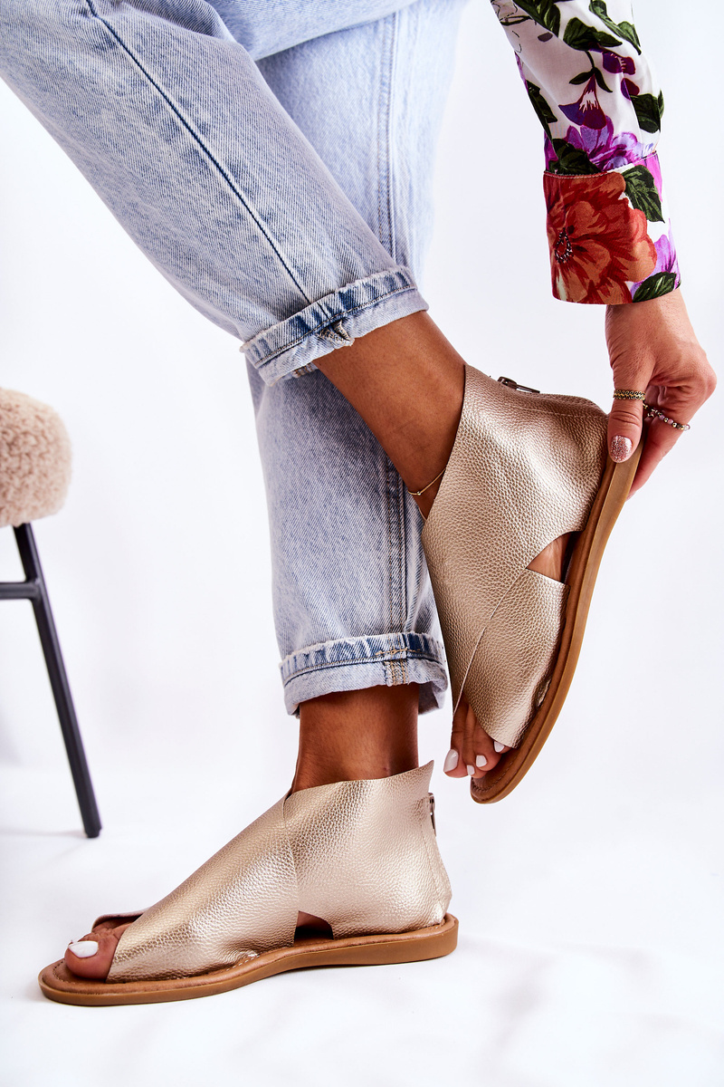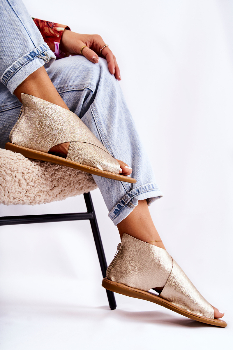 Sandały Damskie Skórzane Na Szeroką Stopę Złote Catalise