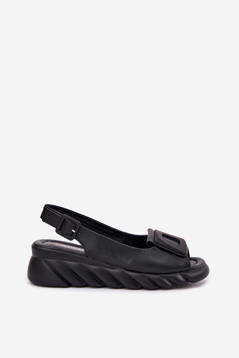 Sandały Damskie Skórzane Z Ozdobą Koturn Czarne Artiker 56C2156