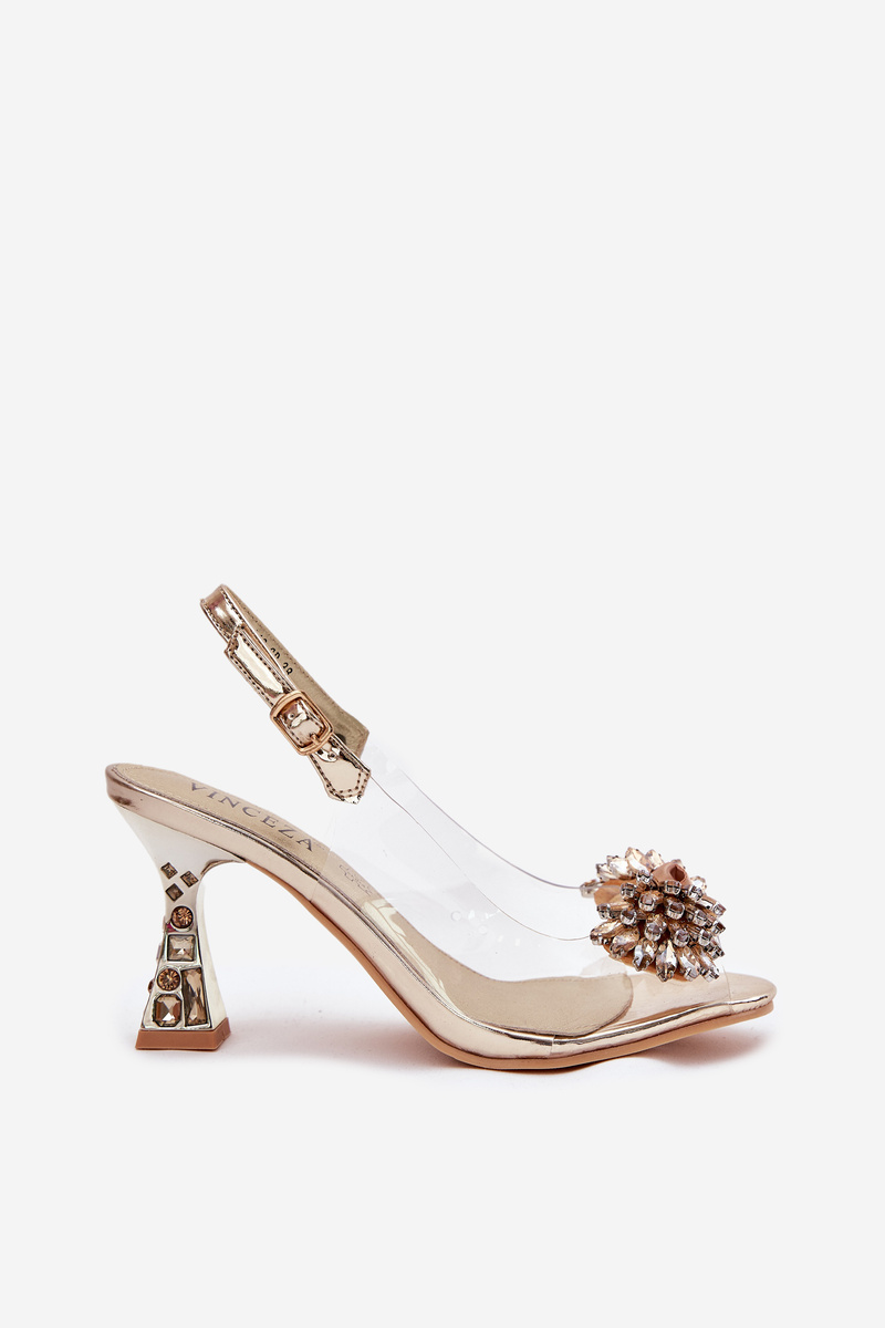 Sandały Damskie Transparentne Z Kryształkami Na Rozszerzanej Szpilce Złote Vinceza 70116