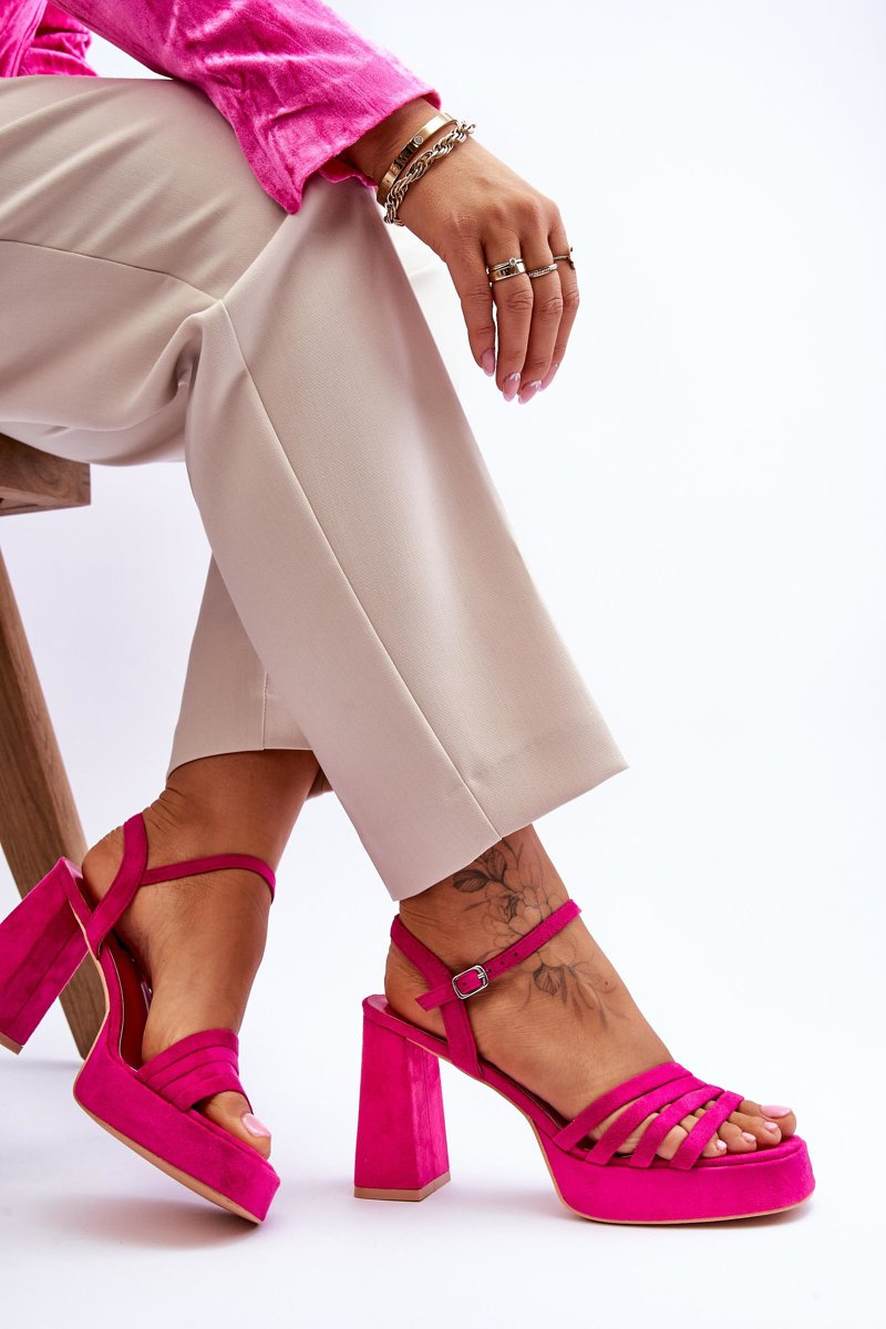 Sandały Damskie Zamsz Obcas Platforma Fuksja Verda