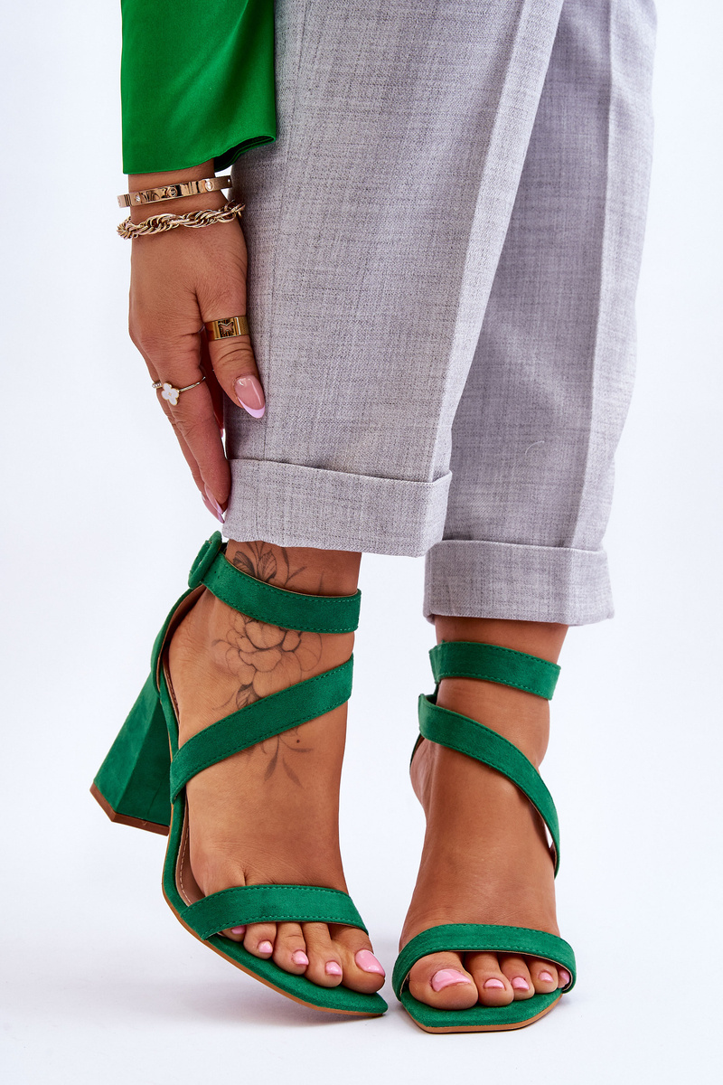 Sandały Damskie Zamsz Obcas Zielone Lanes