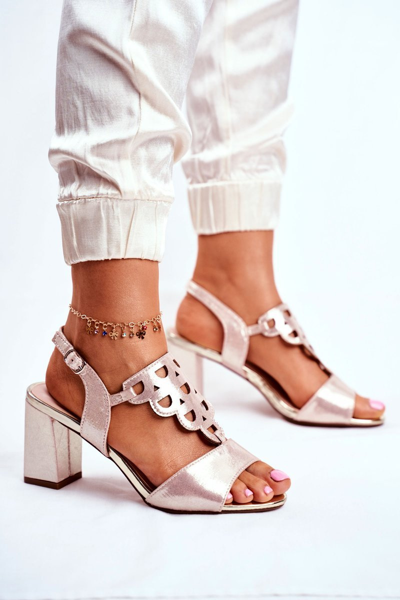 Klasyczne a zarazem eleganckie sandały, które sprawdzą się w każdej codziennej sytuacji. Sandałki posiadają regulowane zapinanie na sprzączkę wokół kostki. Dzięki ażurowemu zdobieniu oraz delikatnemu brokatowi będą idealnym dopełnieniem naszych stylizacji. Stabilny, niski słupek uniesie i subtelnie podkreśli naszą sylwetkę. Postaw na sprawdzony styl i kreuj trendy tego sezonu! Przy wyborze rozmiaru prosimy sugerować się tabelą rozmiarów.