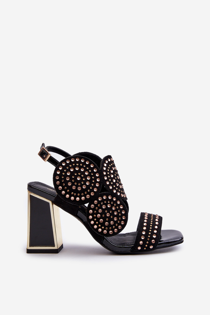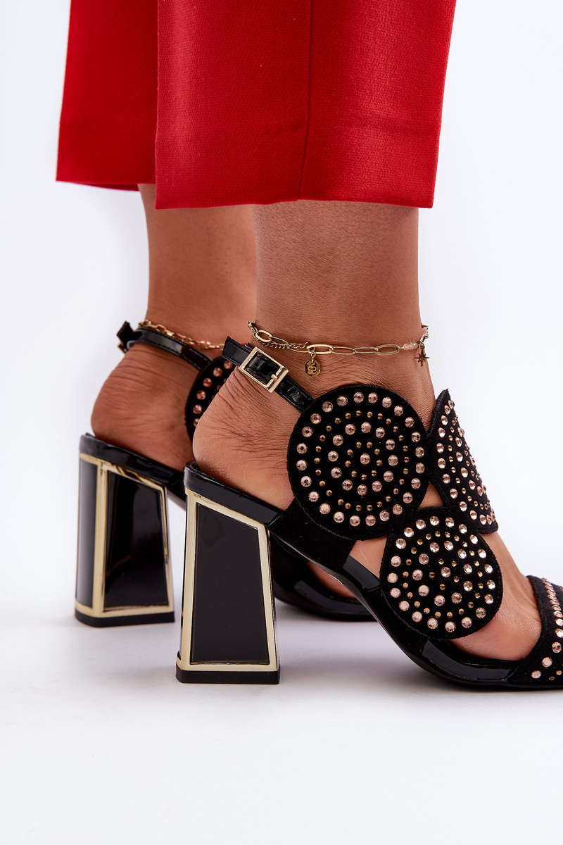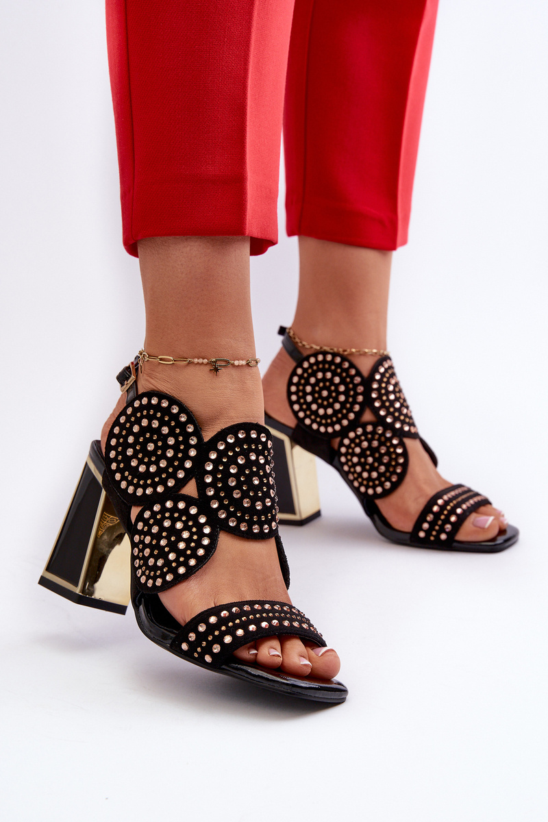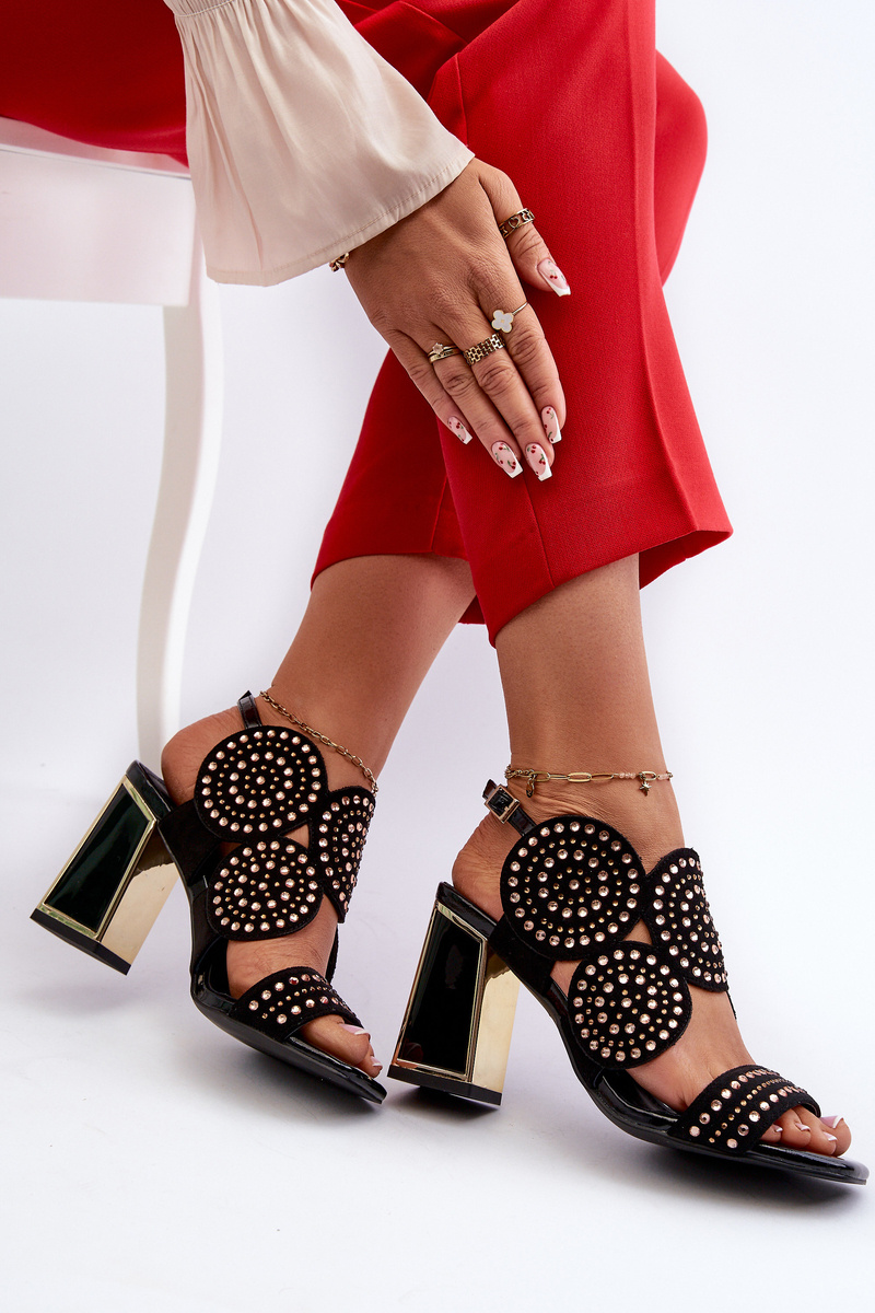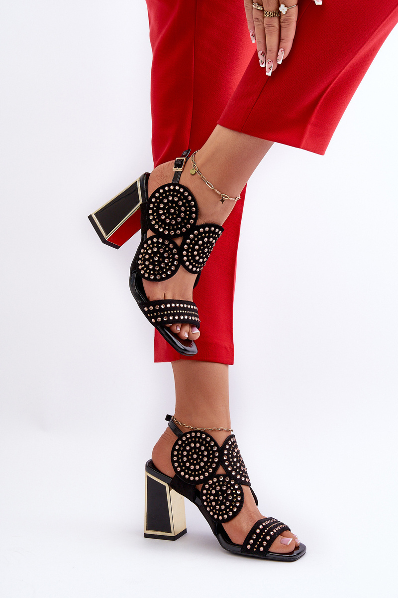 Sandały Damskie Zdobione Na Słupku Czarne D&A CR026