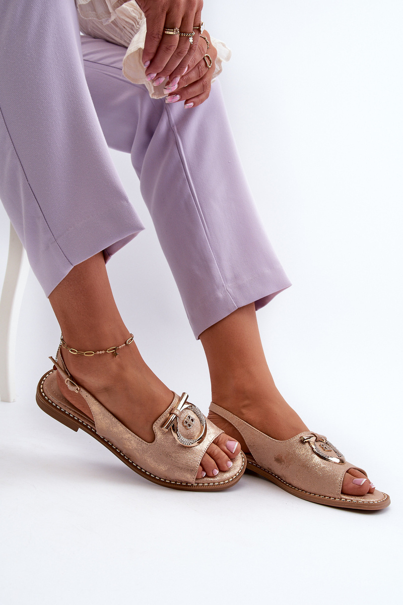 Sandały Damskie Złota Ozdoba Płaski Obcas Różowe Złoto S.Barski KV24-053