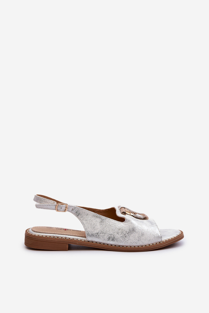 Sandały Damskie Złota Ozdoba Płaski Obcas Srebrne S.Barski KV24-053