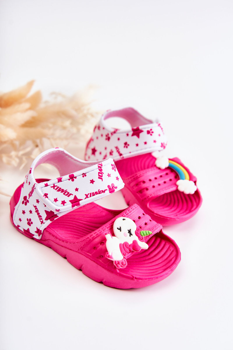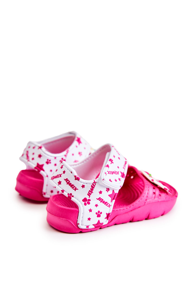 Warto wyposażyć szafę swojej pociechy w wygodne i przewiewne sandałki. Ten rodzaj obuwia jest idealny na wakacje, spacery czy do przedszkola. Sandałki to obuwie, które odpowiada za prawidłową wentylację i podtrzymywanie stopy dziecka. Wykonane z niezwykle lekkiego, piankowego tworzywa. Posiadają gumowe ozdoby na pasku z przodu. Zapinane na rzep przy kostce.