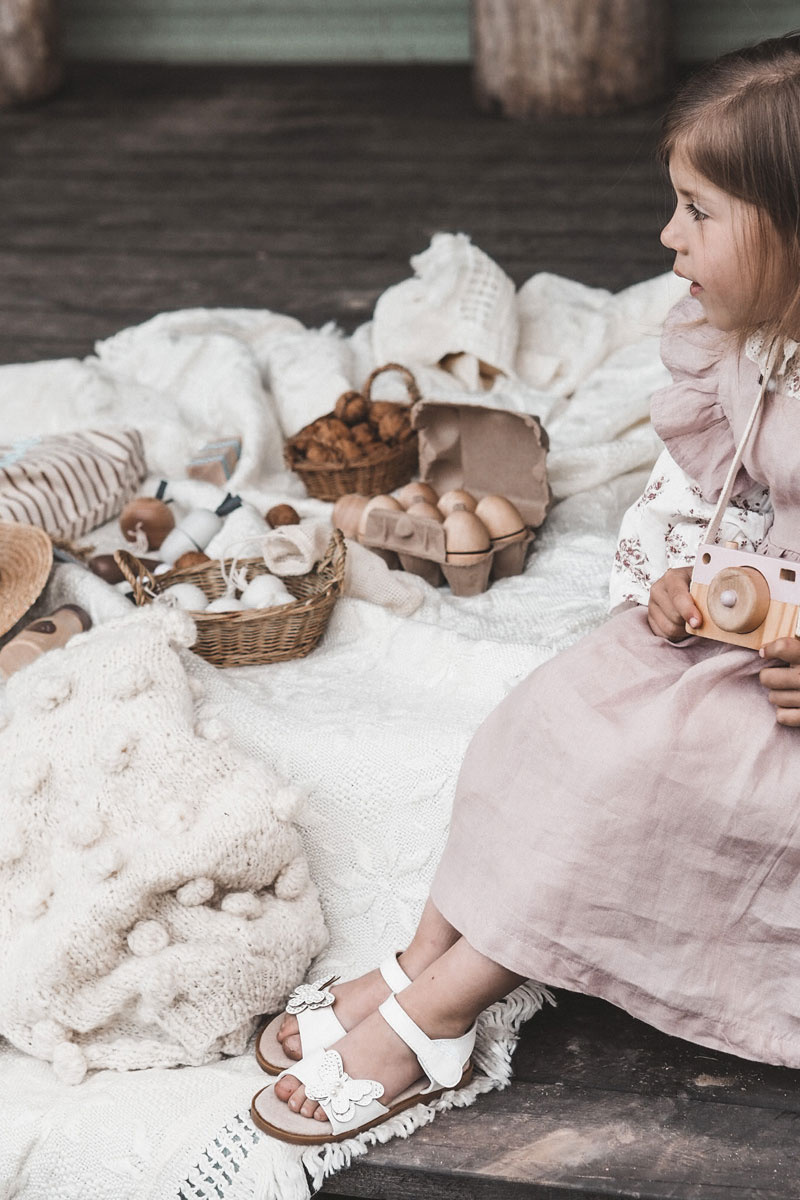 Sandały Dziecięce Skórzane Motylki Białe Rolly