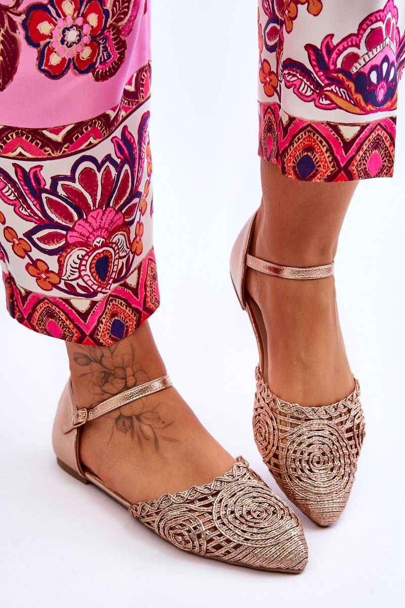 Sandały Eleganckie Damskie Płaskie Różowe Złoto Sheia
