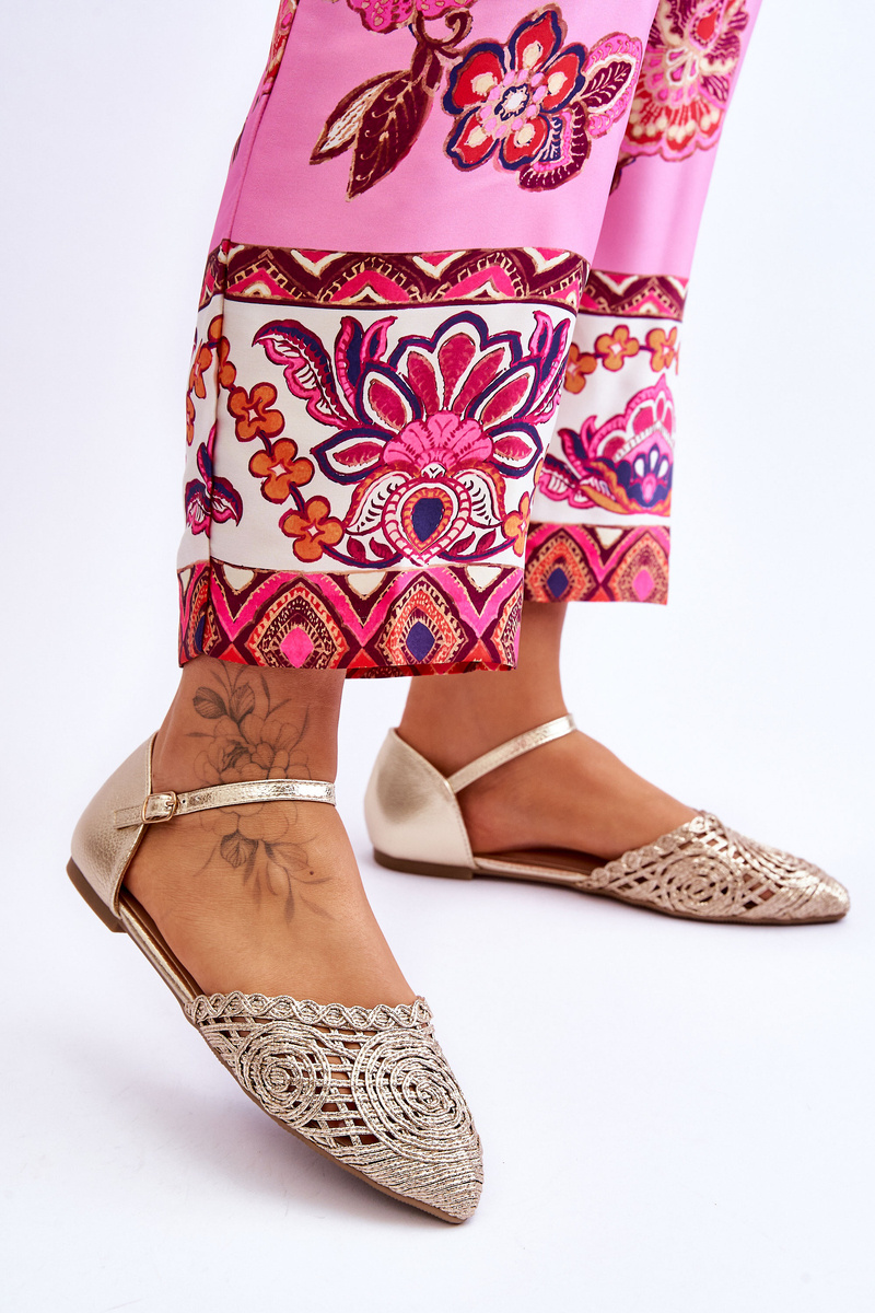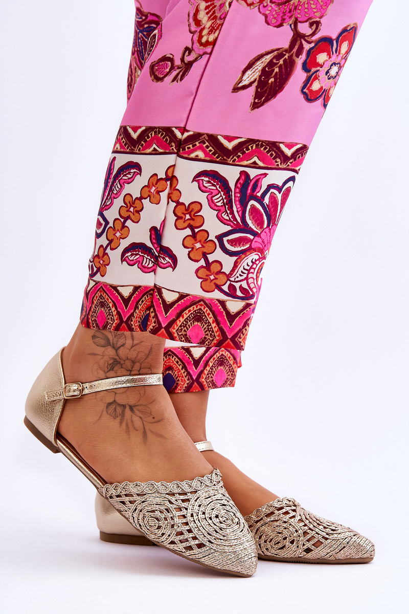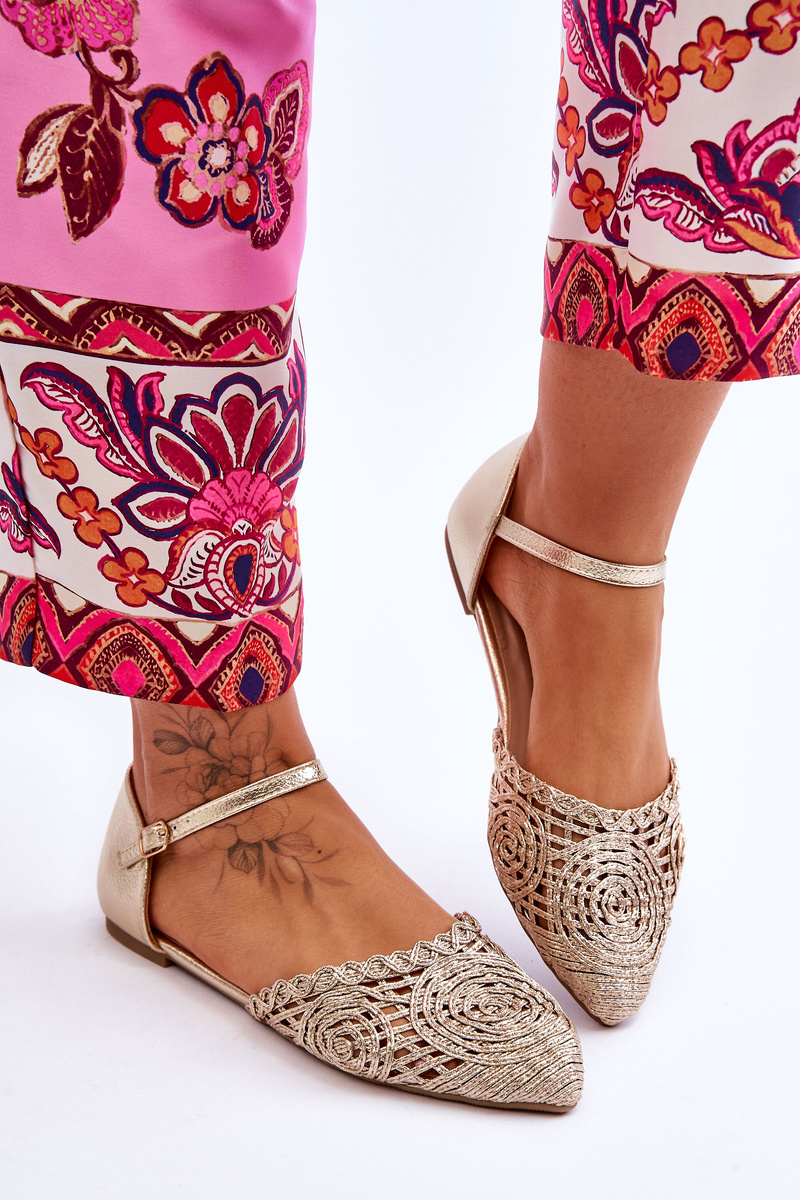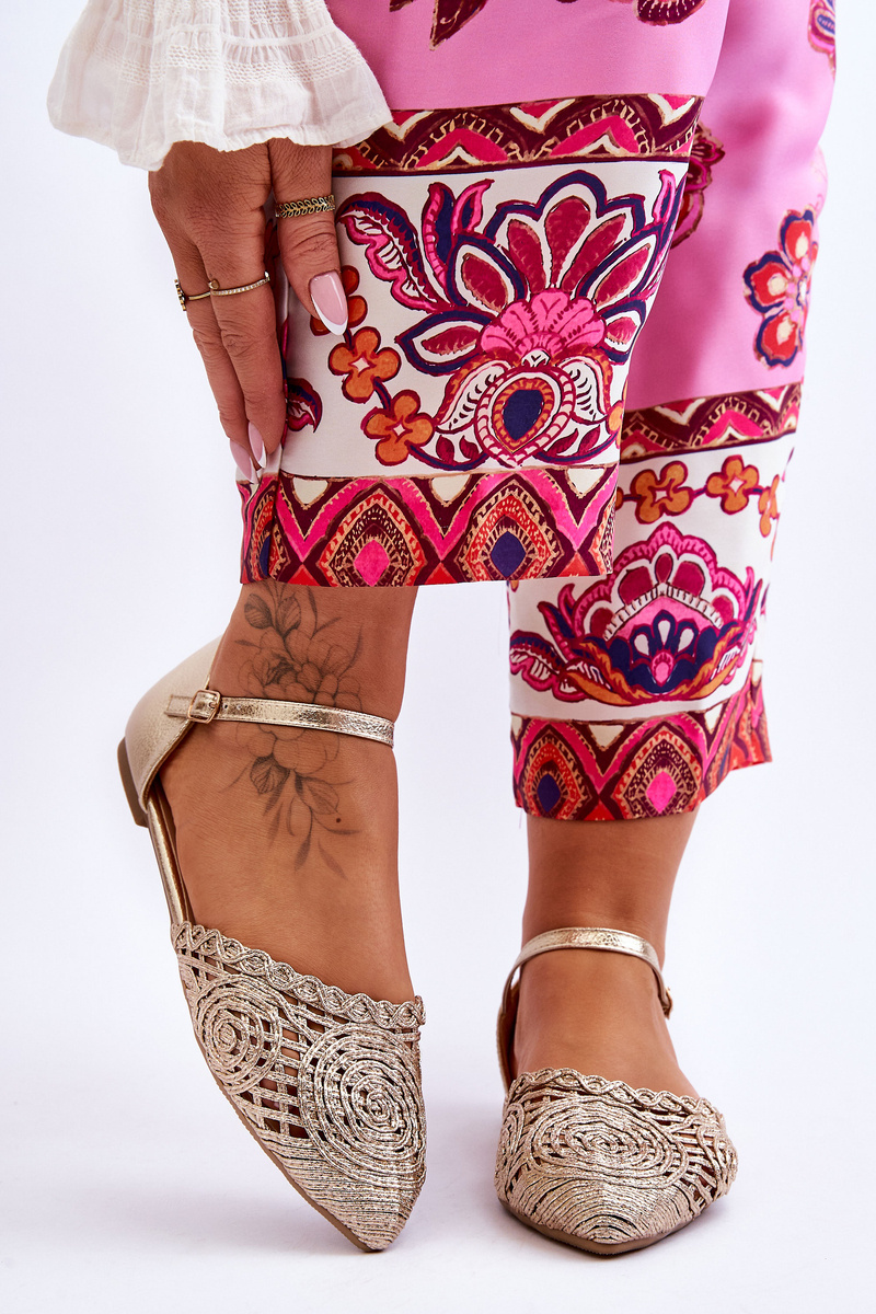 Sandały Eleganckie Damskie Płaskie Złote Sheia