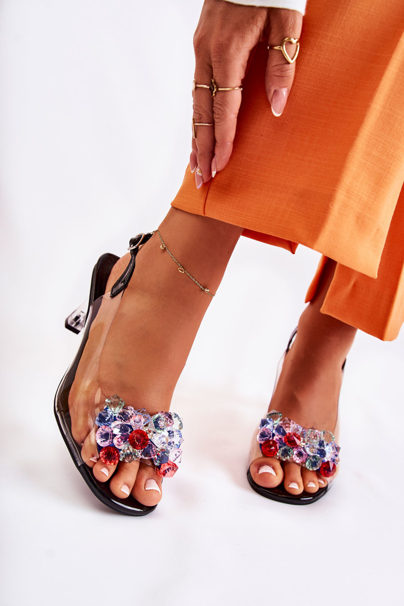 Sandały Eleganckie Ozdobne Kryształy Czarne Lanette