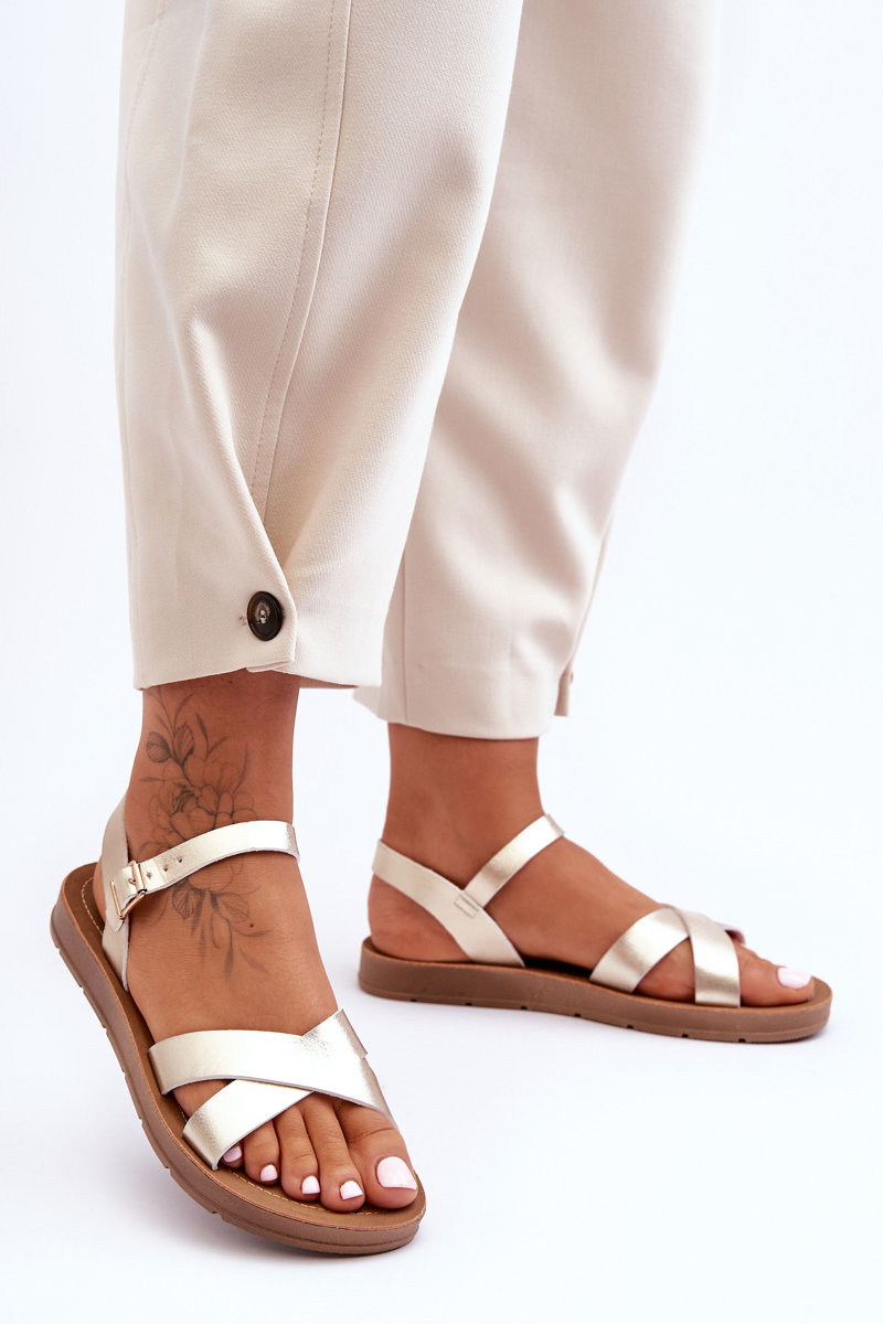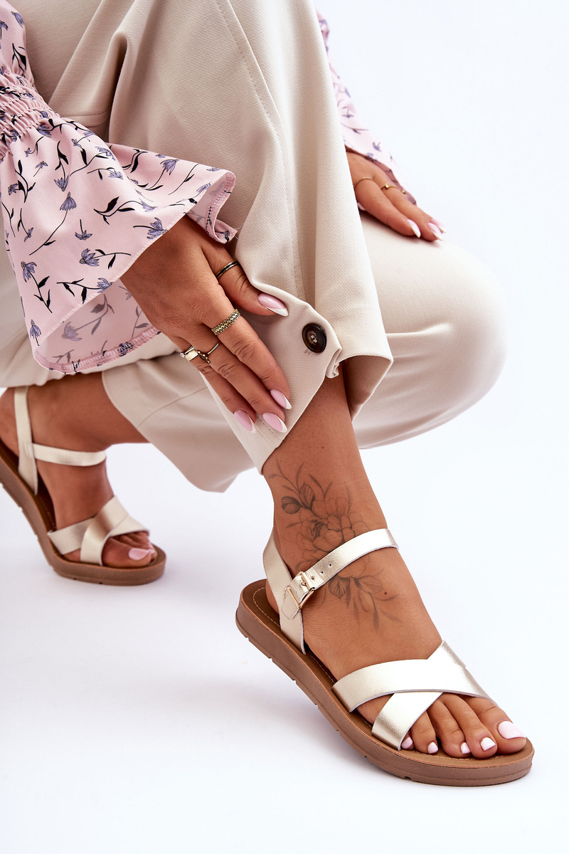 Sandały Klasyczne Skóra Damskie Złote Talisma 2103